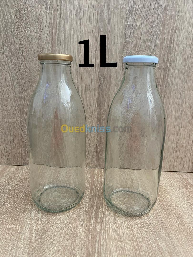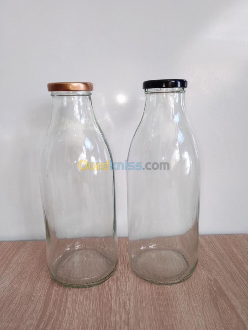 Bouteille en verre 1L pour l'eau, lait, jus, limonade, ....