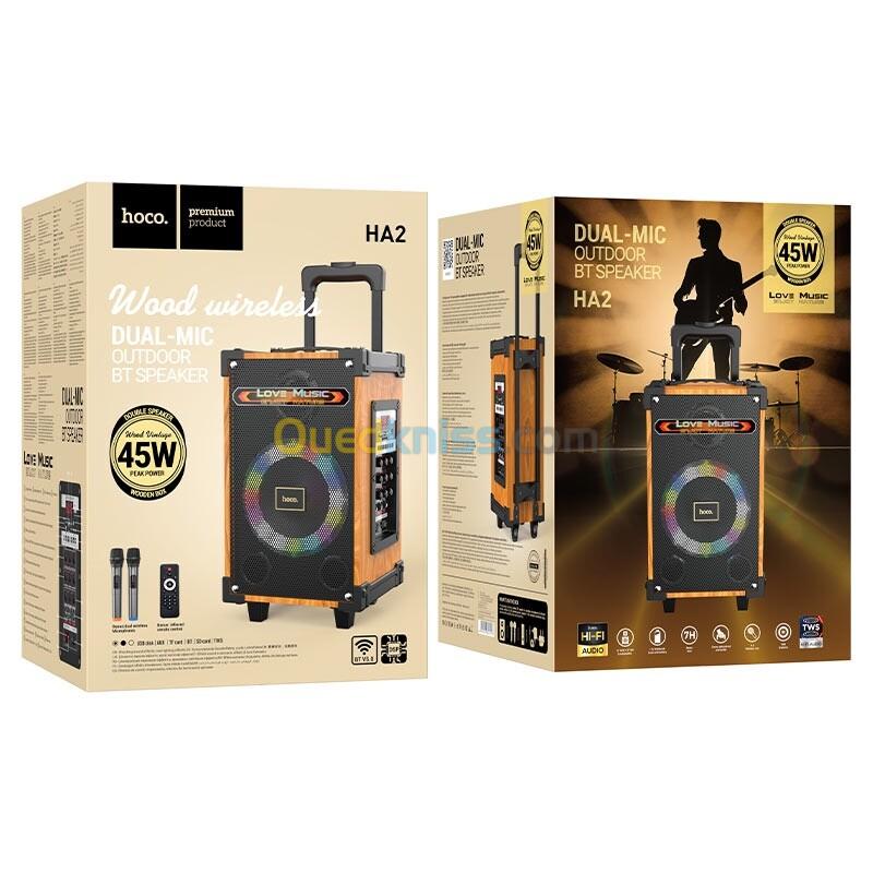 HA2 Wave, haut-parleur sans fil, BT v5.0, avec batterie 4500mAh, 7 heures de travail, prend en charge les modes de lecture BT, TF, SD, USB, AUX, TWS, avec 2 microphones sans fil.
