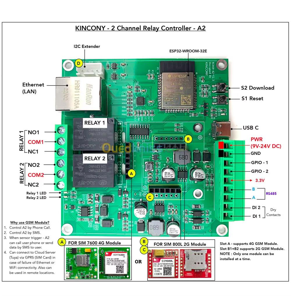 2 channel esp32 4G relay board KC868-A2
