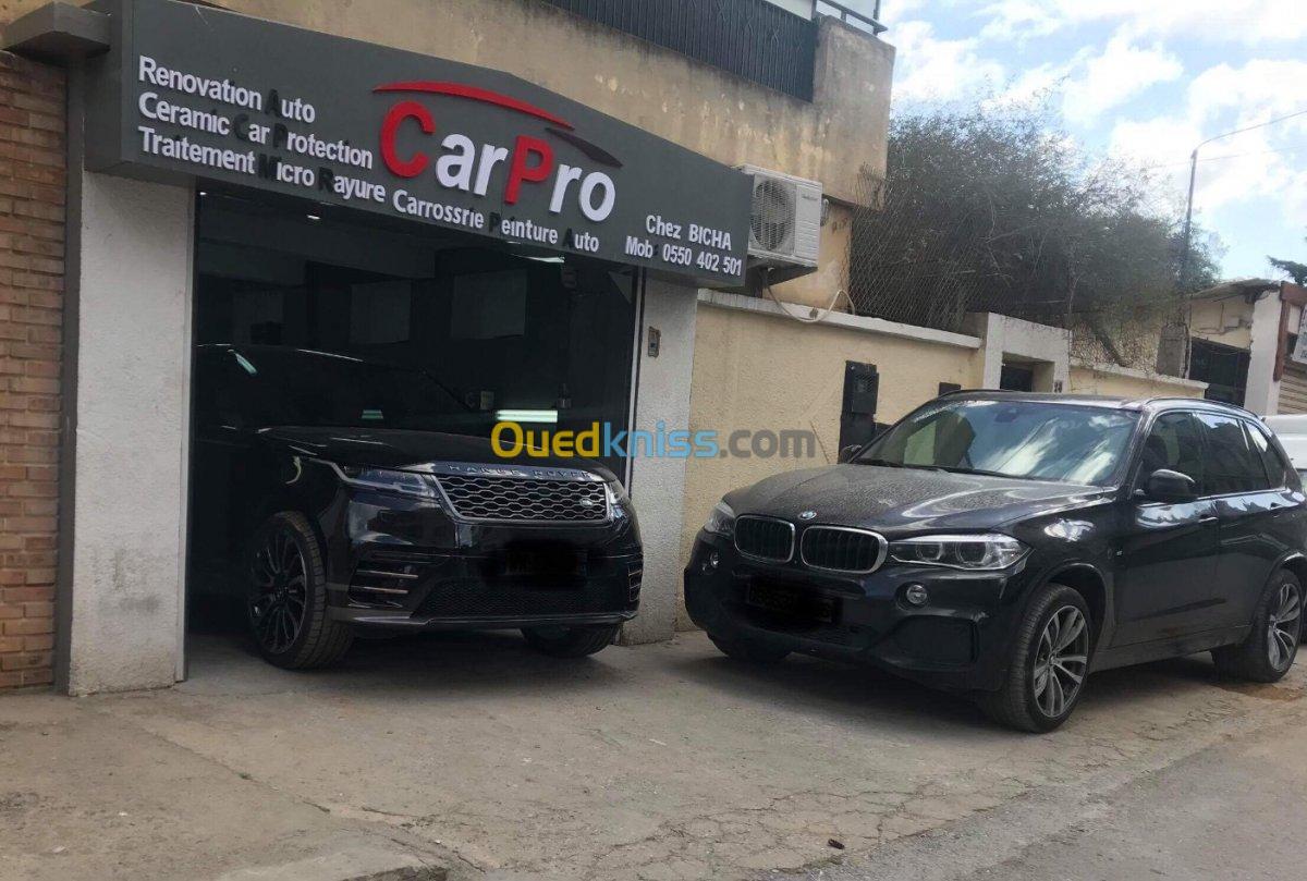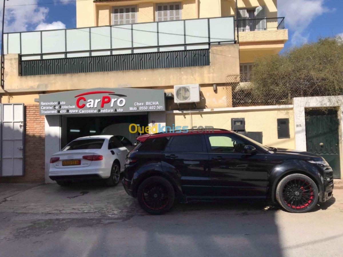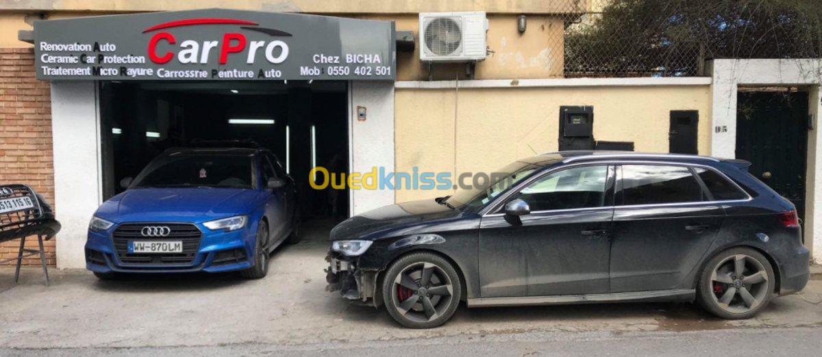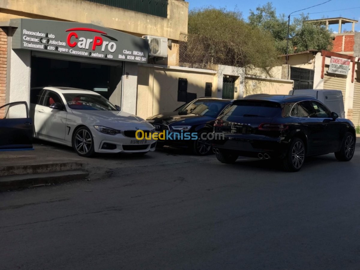 - traitement micro rayures -traitement céramique -peinture au four -habillage véhicule -Réparation véhicule ( tôlerie) -debosselage (a froid ) -lustrage etc...