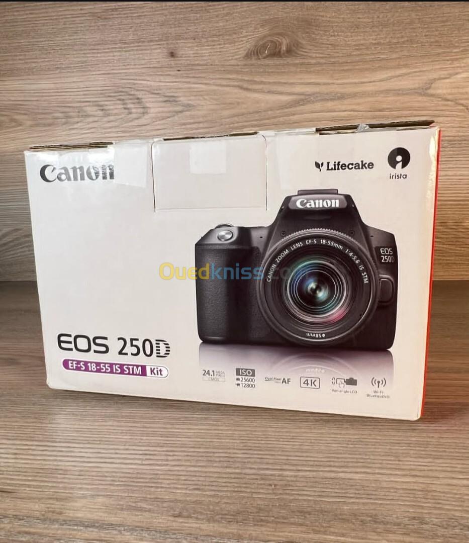 Canon 250d Objectif 18-55 chargeur et batterie D'origine avec carte mémoire 128 utilisée une fois
