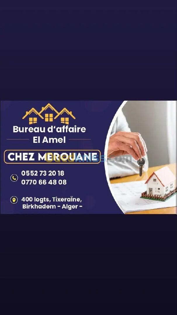 appartement F3 location résidence birkhadem mezouar superficie 100e m premier étage de façade caméra suivant gardiennage 24 sur 24 tous les commandity chauffage central chaudière internet rideau volet électrique un pas de vis-à-vis de vis-à-vis jardin gardiennage l'accès l'autoroute birkhadem 100 m numéro l'agence bureau d'affaire L E Amel agence immobilière /