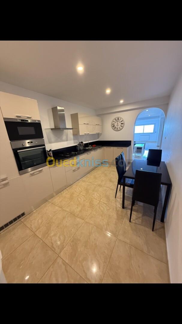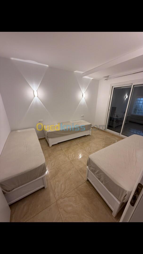 Offrez-vous un séjour exceptionnel dans ce superbe F3 de 130 m², entièrement meublé et équipé, situé au-dessus de Méga Pizza, dans la résidence moderne et sécurisée Bouhmila à Saint-Cloud, à deux pas de la corniche et des plages.