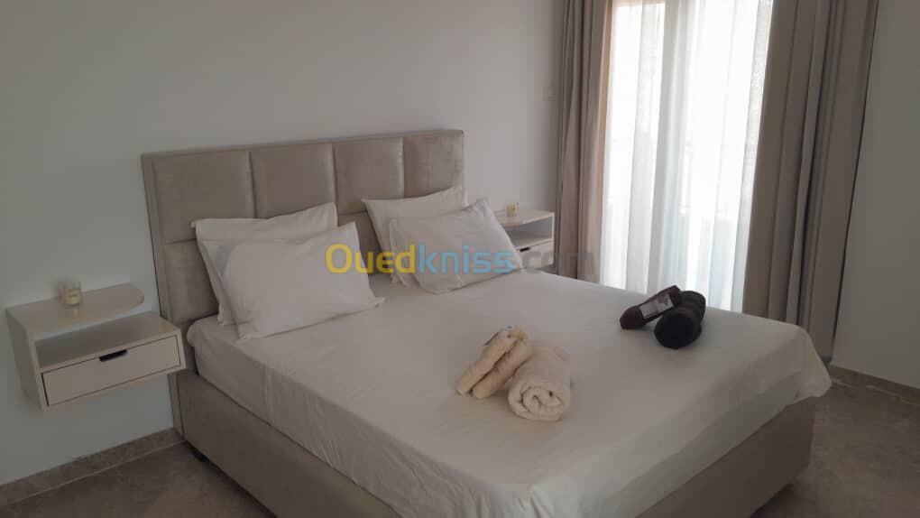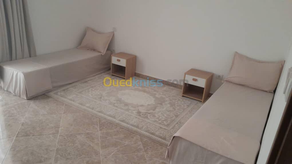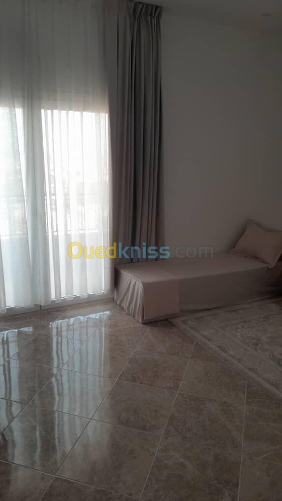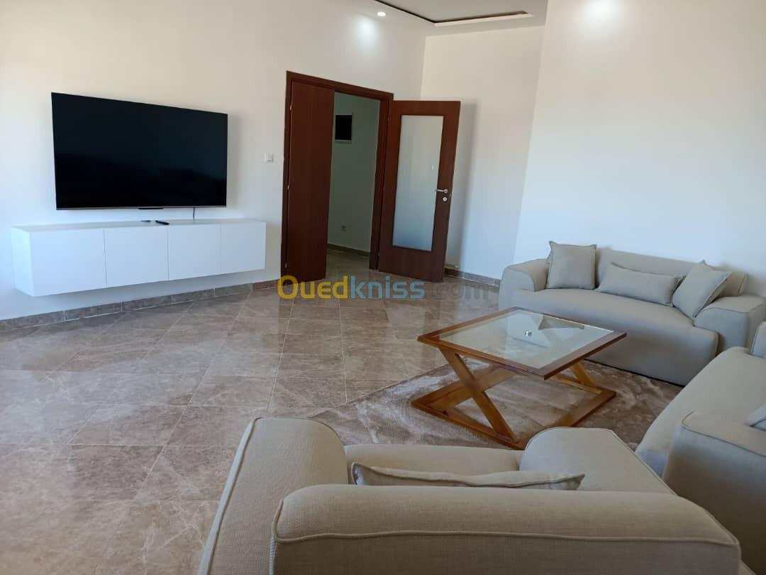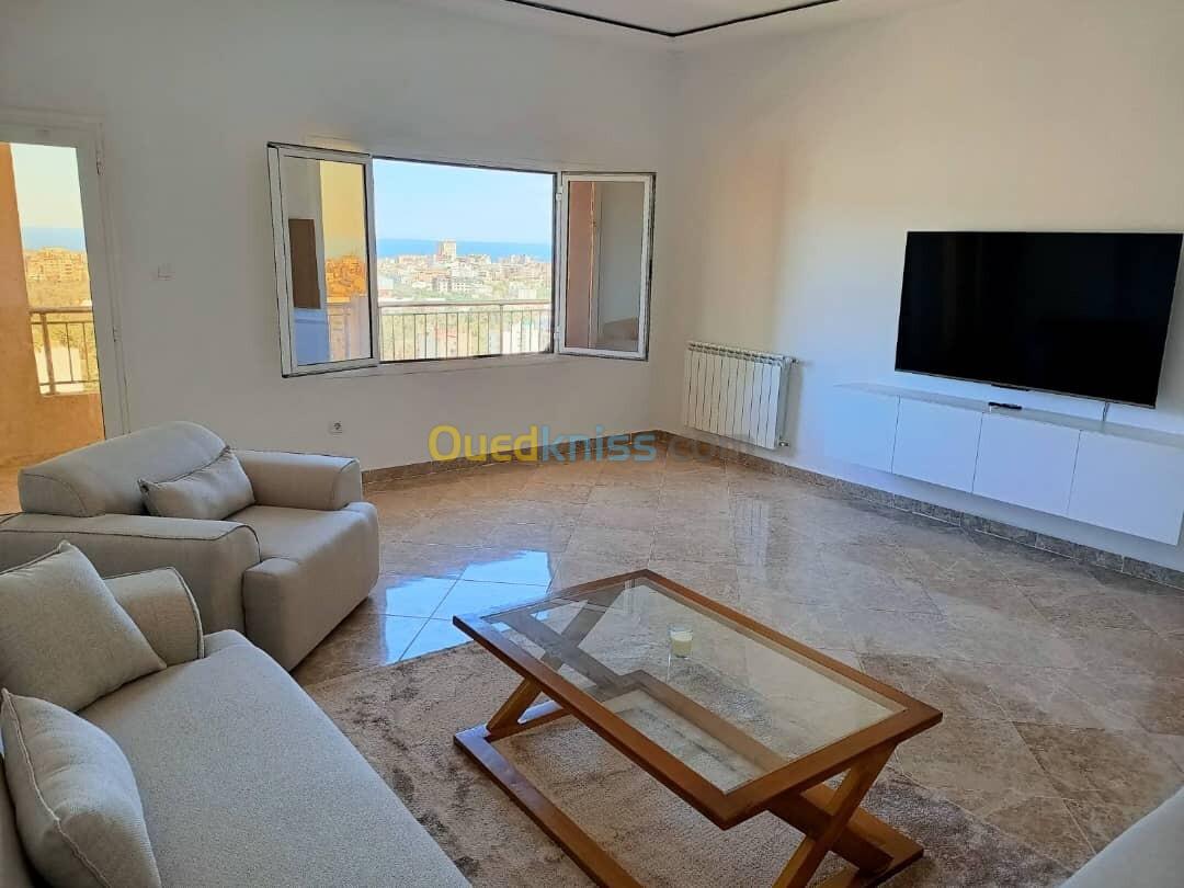 Spécialiste Affaires Immobilières vous propose en location un appartement meublé F3 de 143 m² dans les hauteurs ( avec ascenseur ) vue sur Mer , à La Résidence Guessab - Mediouni , pour le prix de : 135.000DA fixe.