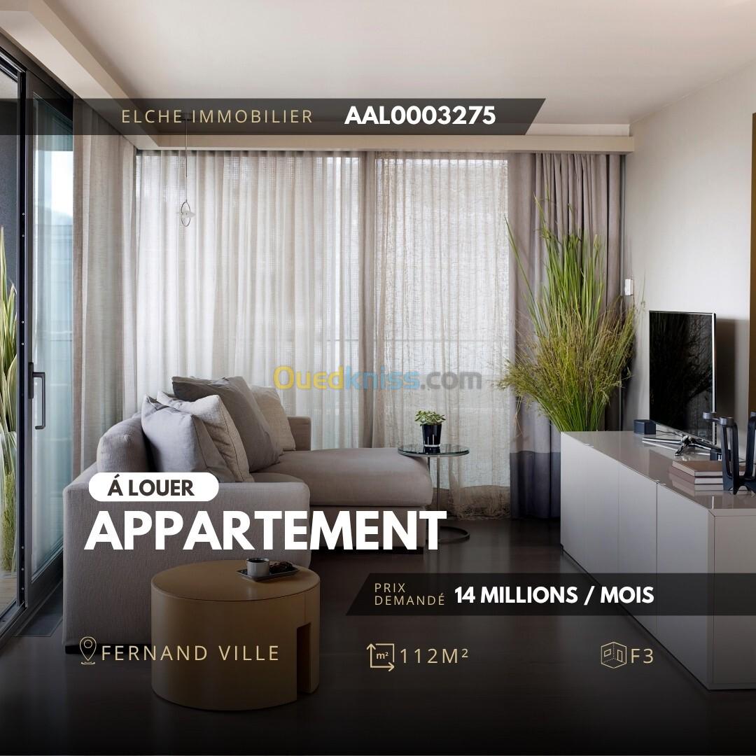 🏢 À LOUER – APPARTEMENT F3 MEUBLÉ & ÉQUIPÉ À FERNAND VILLE, ORAN. dans une résidence sécurisée avec ascenseur, caméras de surveillance et société de gestion.
