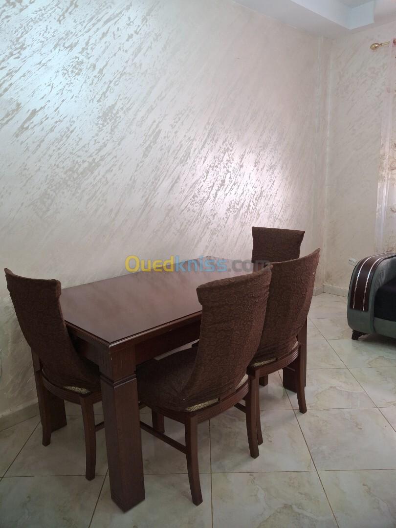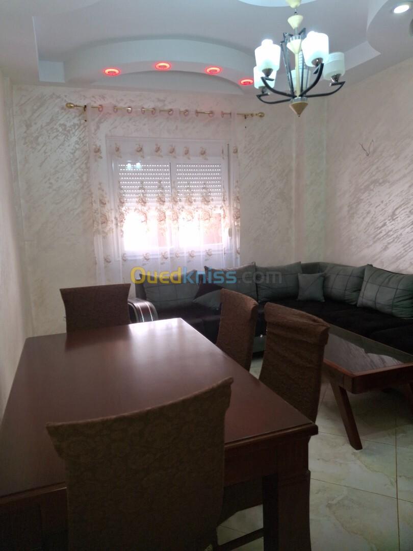 particulier vous propose un appartement f3 totalement meublé très ensoleillé pour le confort de chaque membre de famille et pour des vacance ou pour un travail pressée ou activité situe daïra bordj cartier benzerga 4 km l'aéroport houari Boumediene 5 km du palais des exposition safex 16 km Alger centre OBS; pour un couple le livret de famille est obligatoire nous restons à votre disposition pour tout renseignement complémentairs soyez les bienvenus pour le prix pas cher 6 mille 500 dinars jour prix fixe libre de suite voir photos libre jusqua 18 oute