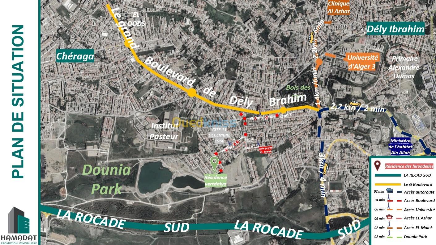 ✅ Proximité des écoles, centre commerciaux, le grand boulvard de Dely-ibrahim a 300 metre, 5 min de chef lieux de la commune Dely-ibrahim, 5min chef lieux de cheraga, 5min accés autoroute ''La rocade sud d'alger '', Dounia Park a 3 min a pied