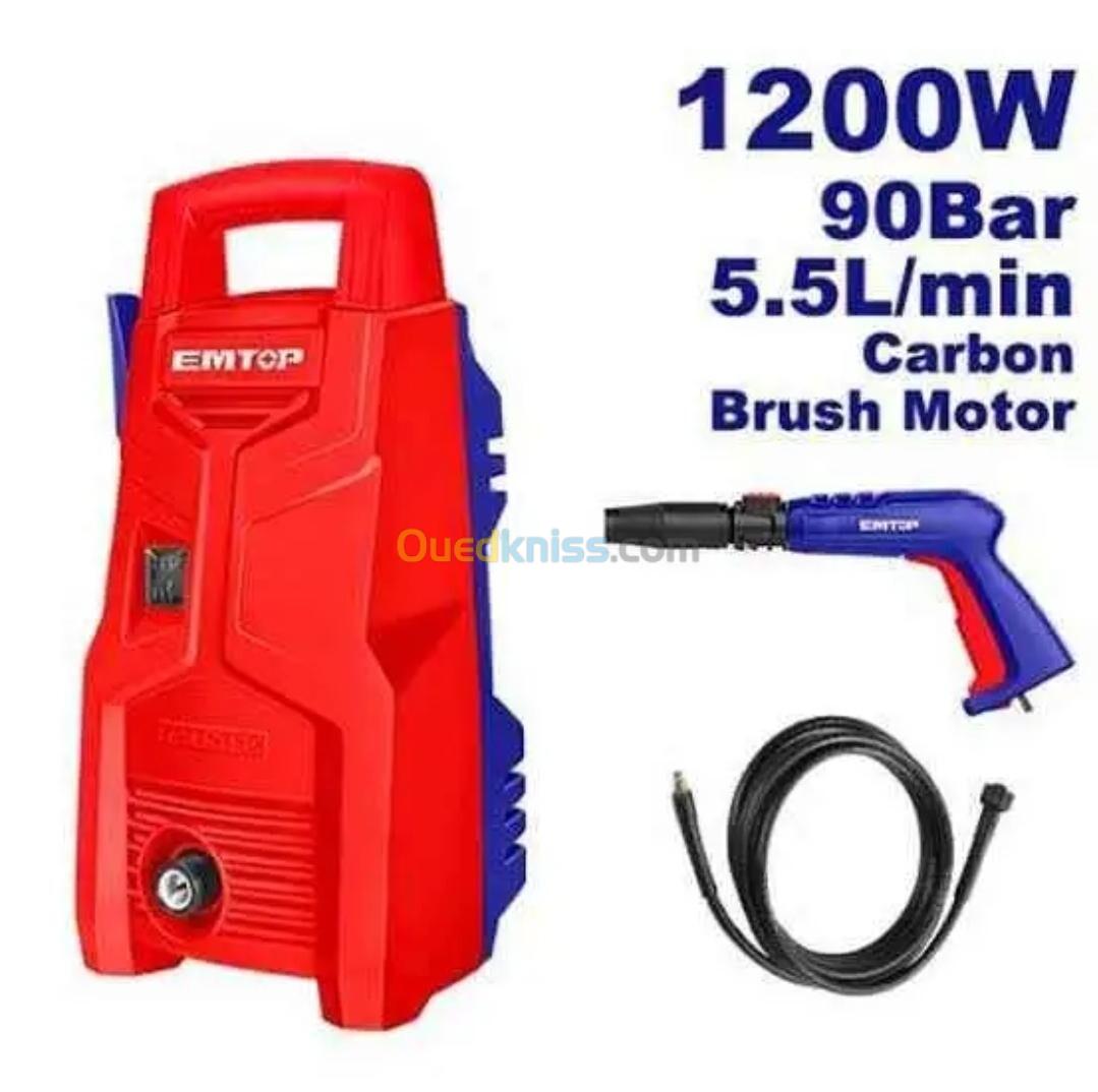 La Fin de la Saleté Tenace Vous en avez assez de frotter sans résultat ? Le nettoyeur haute pression EMTOP 1200W est votre nouvel allié pour un nettoyage sans effort. Dites adieu à la saleté, aux taches de moisissure, et à la crasse incrustée. Cet appareil compact, mais redoutablement efficace, transforme les tâches les plus ardues en un simple geste. Imaginez une terrasse impeccable, une voiture étincelante, ou un mur de façade comme neuf, le tout en un temps record. Sa puissance de 90 bars pulvérise la saleté en quelques secondes, vous faisant économiser du temps, de l'énergie, et de l'eau. Son design ergonomique et son faible poids vous permettent de le manipuler sans fatigue, transformant une corvée en un plaisir. Que vous soyez un amateur de bricolage ou un professionnel, le nettoyeur EMTOP 1200W est l'outil indispensable qui garantit un résultat digne d'un expert, à chaque utilisation. Caractéristiques Techniques Puissance : 1200W Pression Maximale : 90 Bar Débit : 5,5 Litres/minute Accessoires Inclus : 1 pistolet de pulvérisation. 1 lance réglable pour différents types de jets. 1 tuyau haute pression de 5 mètres. Poids : Environ 4 kg (léger et facile à transporter) Design : Compact et ergonomique avec une poignée de transport.