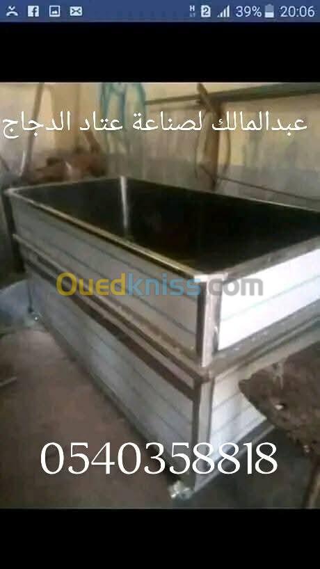 صناعة وبيع كل انواع عتاد مذابح الدجاج شاريوات طوابل انوكس وڨلفنيزي مكان العمل براقي جزائر العاصمة رقم الهاتف 0540358818