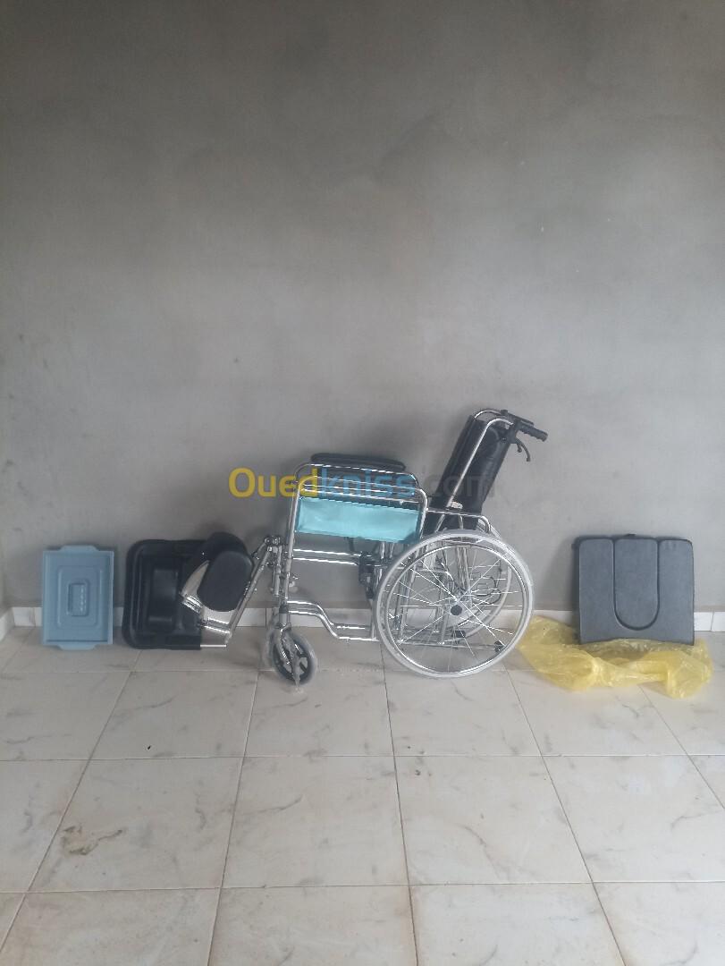 كرسي ذو نوعية ممتازة، غير مستعمل(جديد)، مخصص لذوي الهمم و كبار السن، من الحجم الكبير، مزود بمرحاض متحرك، مخلص بسبعة و تلاثين خاوتي. تلاثة نبيعو.