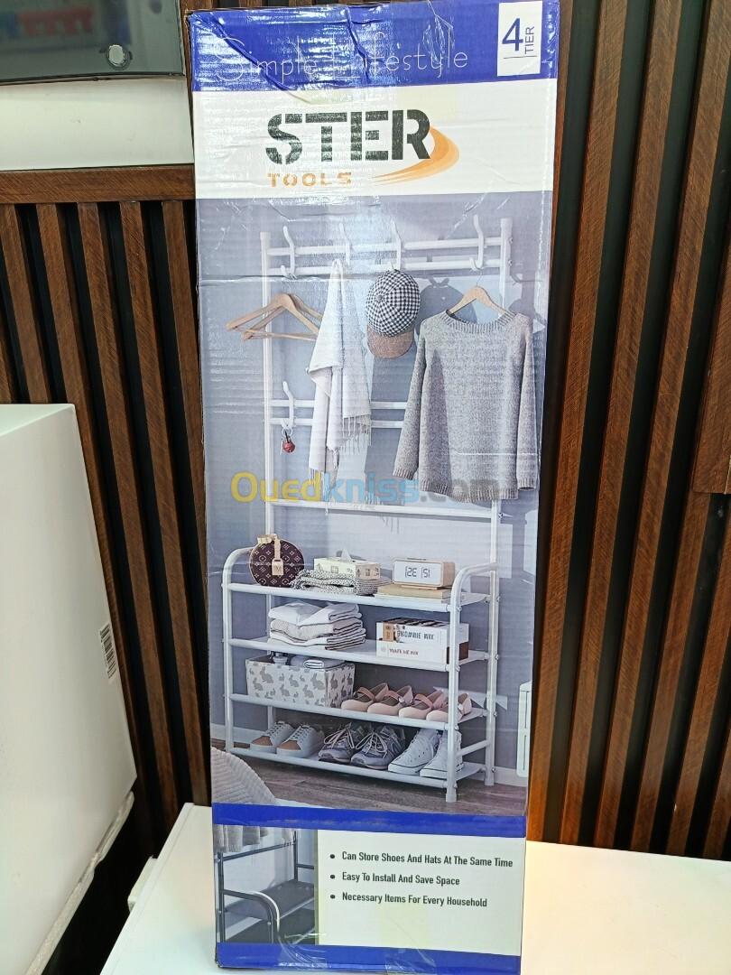 étagère multi fonctionnelle 4 étagères chaussure/cintre/chapeaux