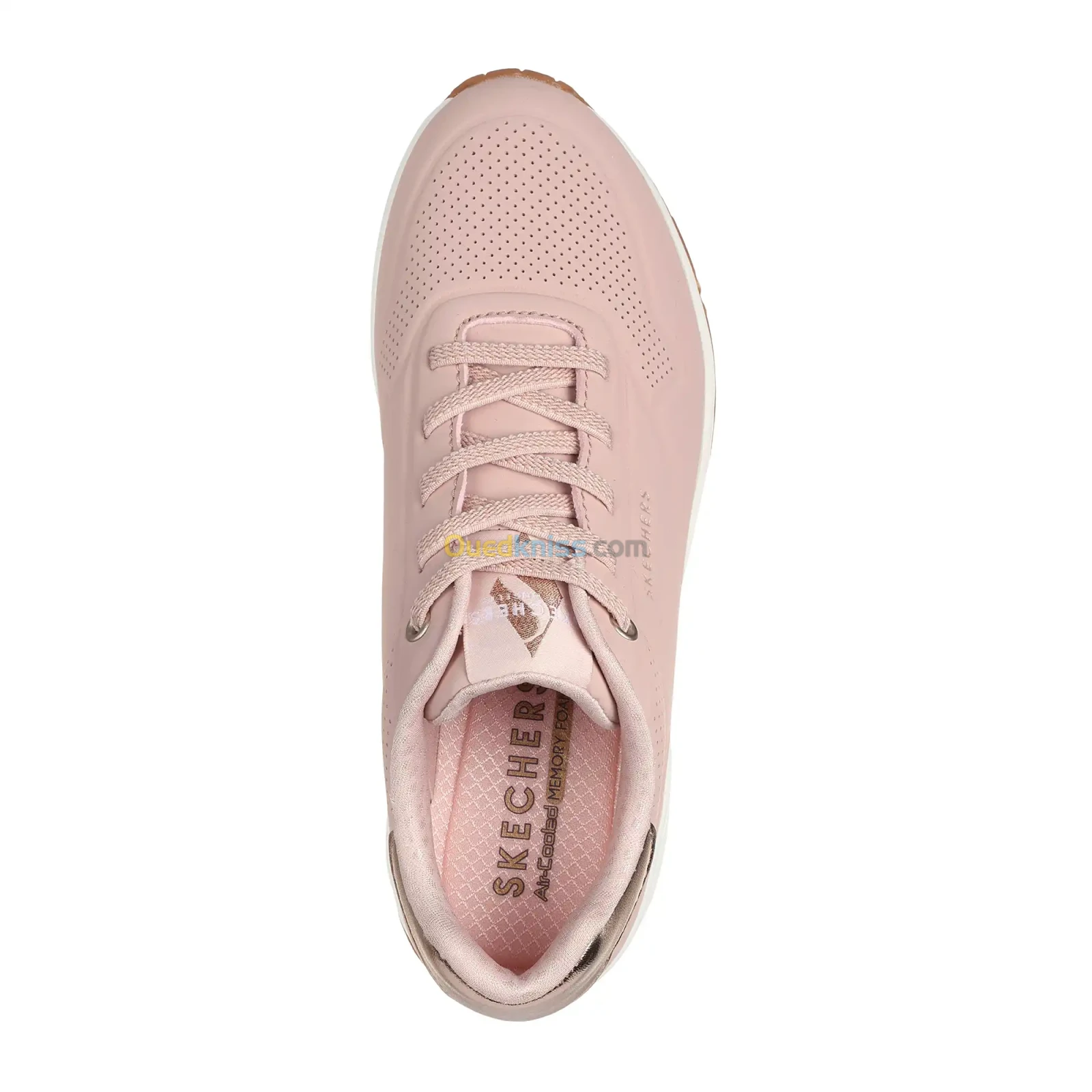 • Semelle intérieure confortable à mémoire de forme Skechers Air-Cooled Memory Foam® aérée • Semelle intermédiaire Skech-Air® à coussin d’air • Semelle intérieure confortable Skechers Air-Cooled Memory Foam® • Tige en matière synthétique durabuck avec garniture métallisée et lacets extensibles • Semelle extérieure souple • Talon de 3,8 cm • Logo Skechers®