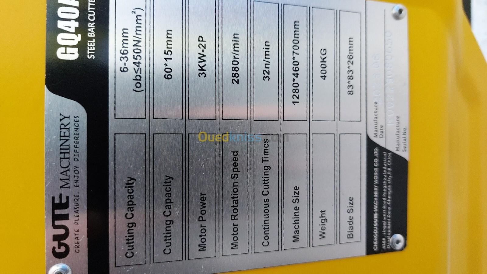 Cisaille Coupe fer rond 3KW 380V 40mm , dresseur 7.5KW 380V 12mm pour fers rond