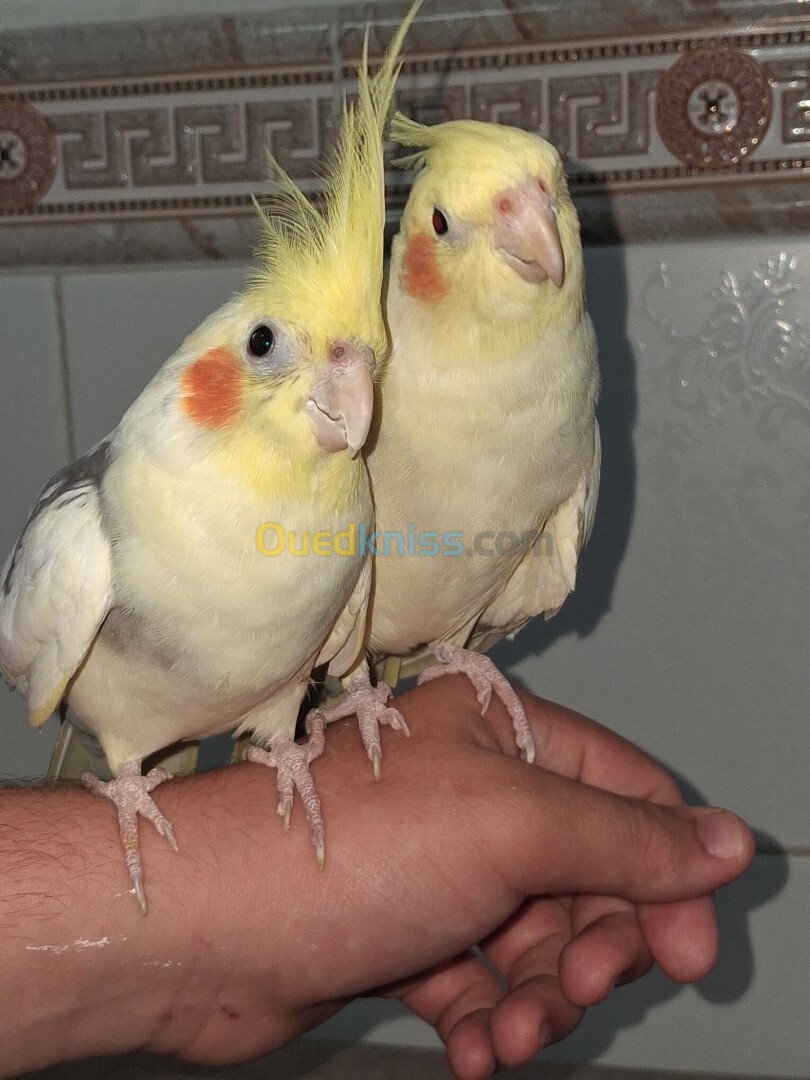 Couple Calopsits Cocktail Dressés 1,5ans avec cage et nid