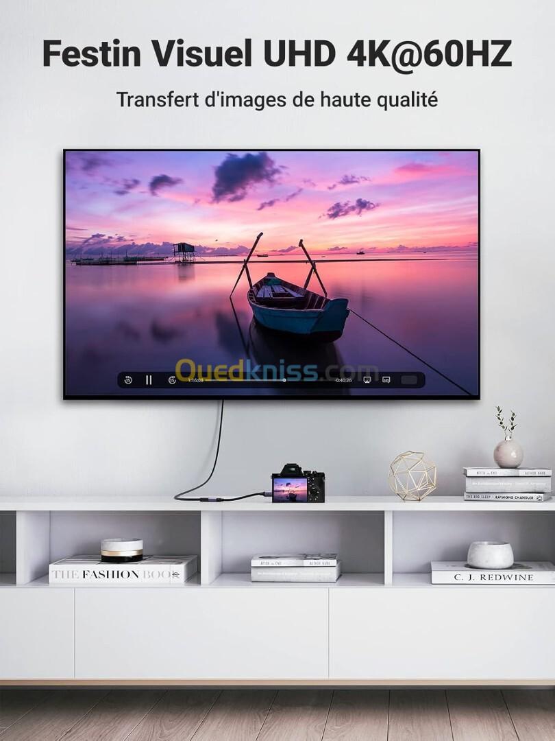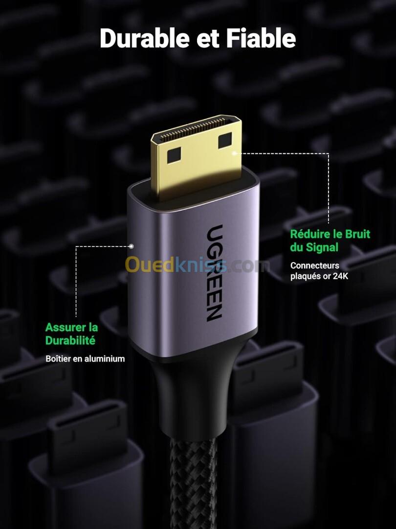 UGREEN Mini HDMI Mâle vers HDMI 2.0 Femelle 4K@60Hz 18Gpbs 3D Ethernet Arc / 25CM Full Compatible