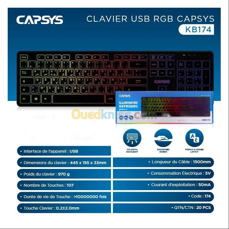 Clavier Capsys KB174 RGB USB 2.0