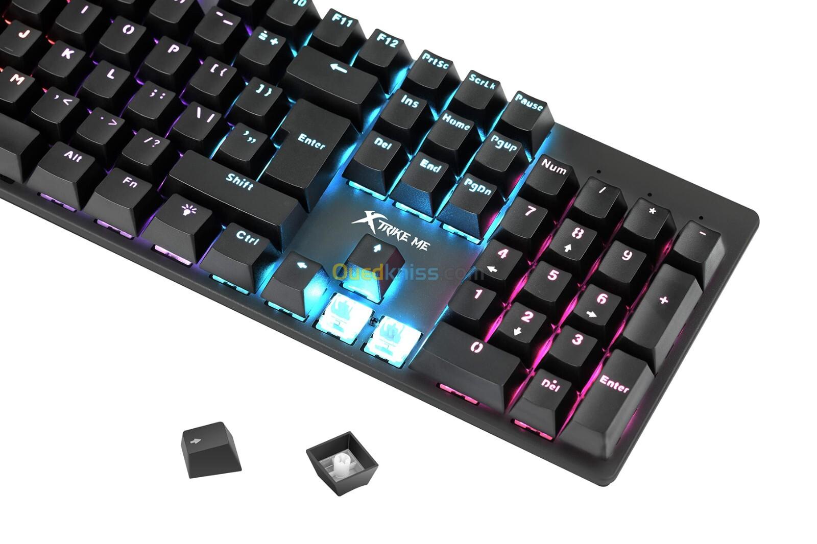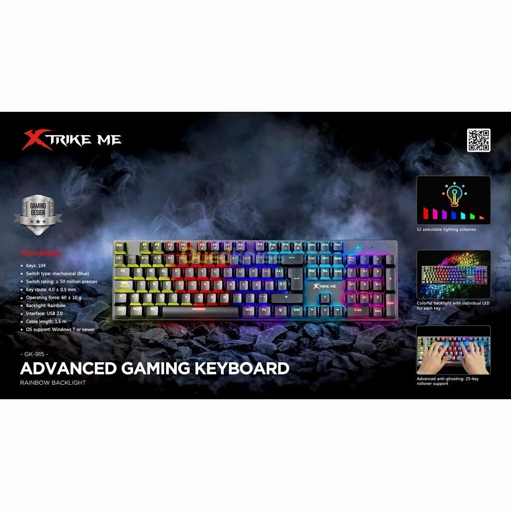 Clavier Gaming Mécanique Multimédia Anti-Ghosting Rétro-Éclairage 104 Touches RGB USB QWERTY GK-915 Xtrike Me