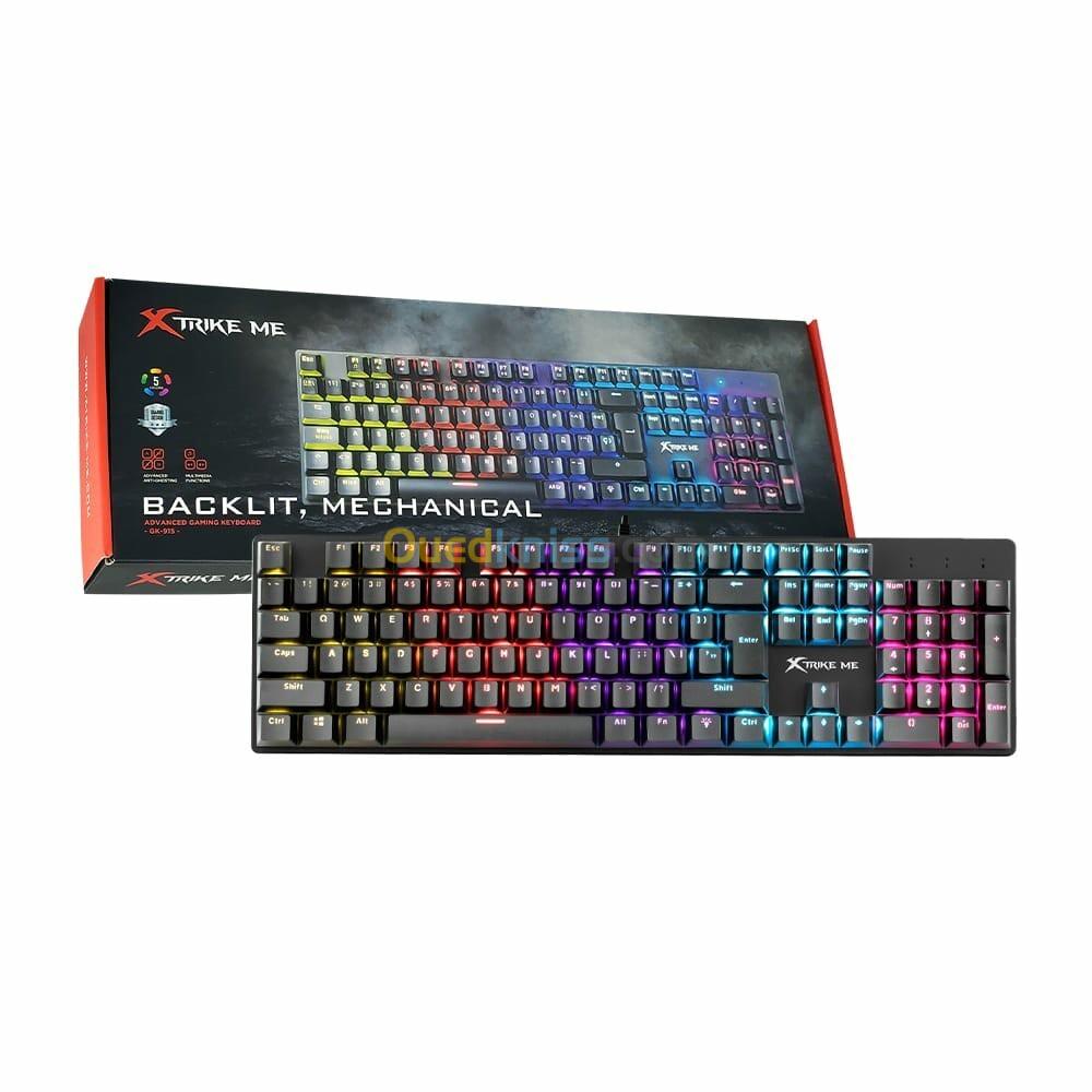 Clavier Gaming Mécanique Multimédia Anti-Ghosting Rétro-Éclairage USB QWERTY GK-915 Xtrike Me