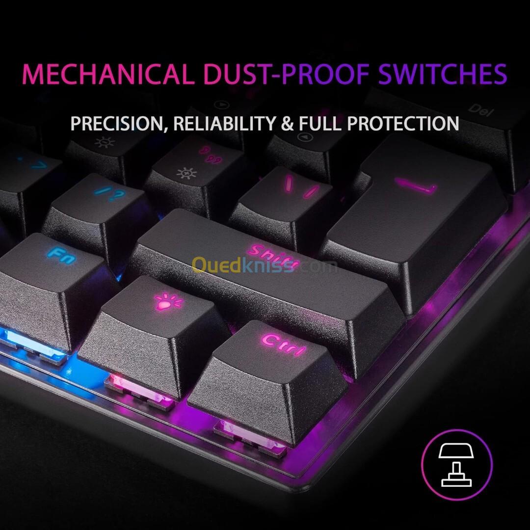 MARS GAMING MK60 Noir, Clavier Gaming Mécanique FRGB, Antighosting, Switch Mécanique Marron, Langue Français