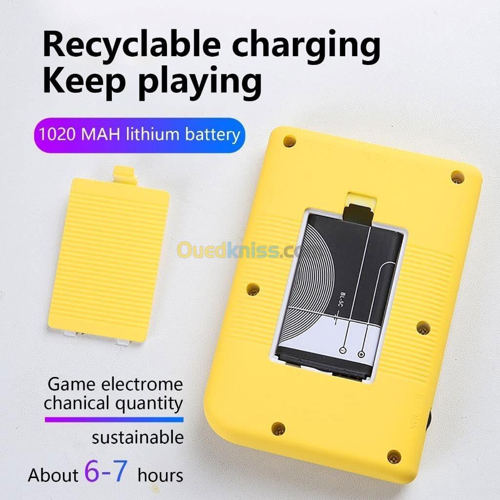 Batterie rechargeable : la console de jeu portable dispose d’une batterie au lithium intégrée de 1020 mAh de grande capacité. Elle peut supporter des jeux prolongés jusqu’à 4 à 5 heures après une charge complète. Que vous soyez en voyage d’affaires, en déplacement ou en camping, vous n’avez pas à craindre de manquer de batterie.