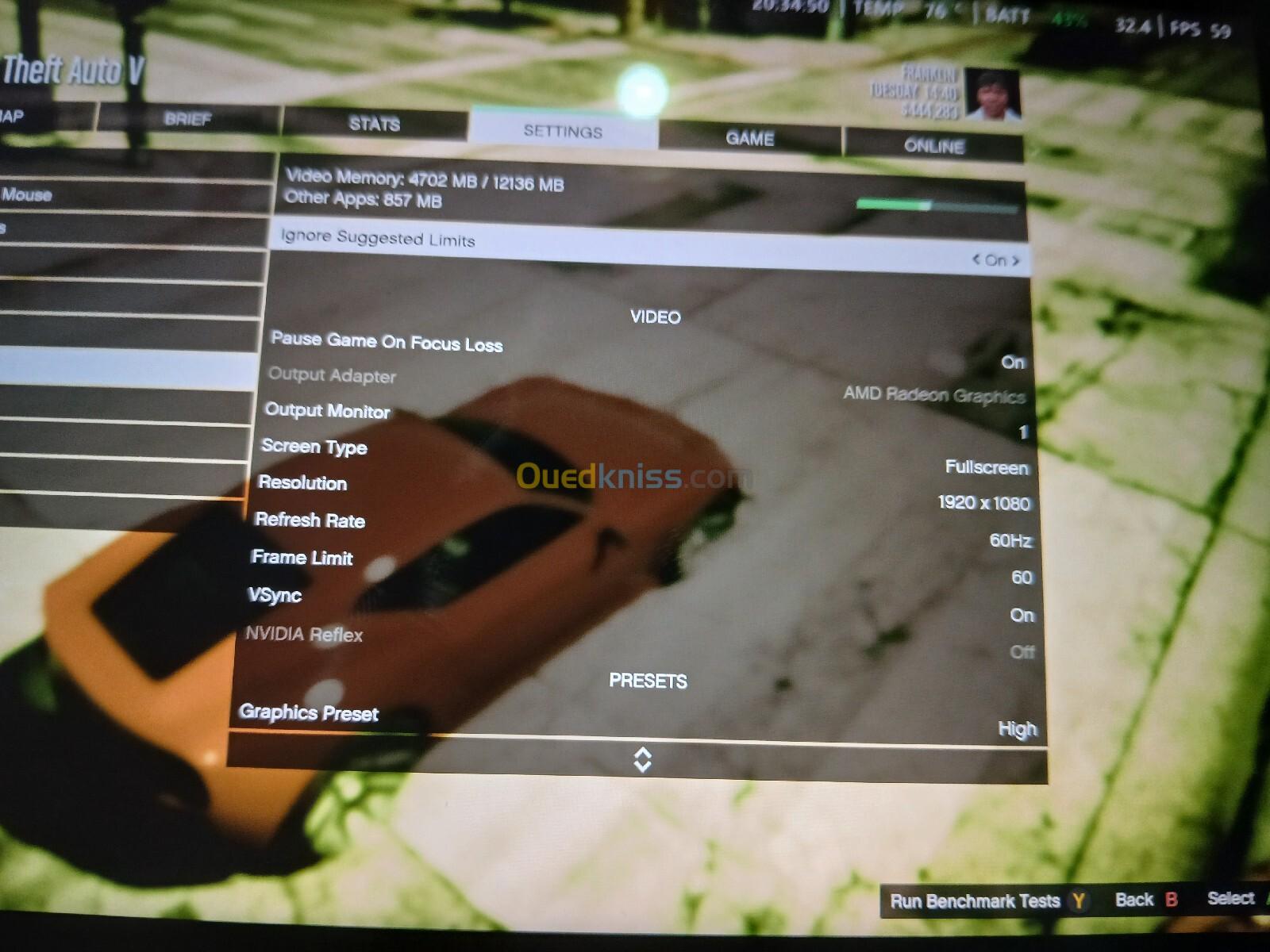 Gta v اعلى اعدادات دقة 1080p وعلى fps انت تحدوا 60 او 90 و على 120hz