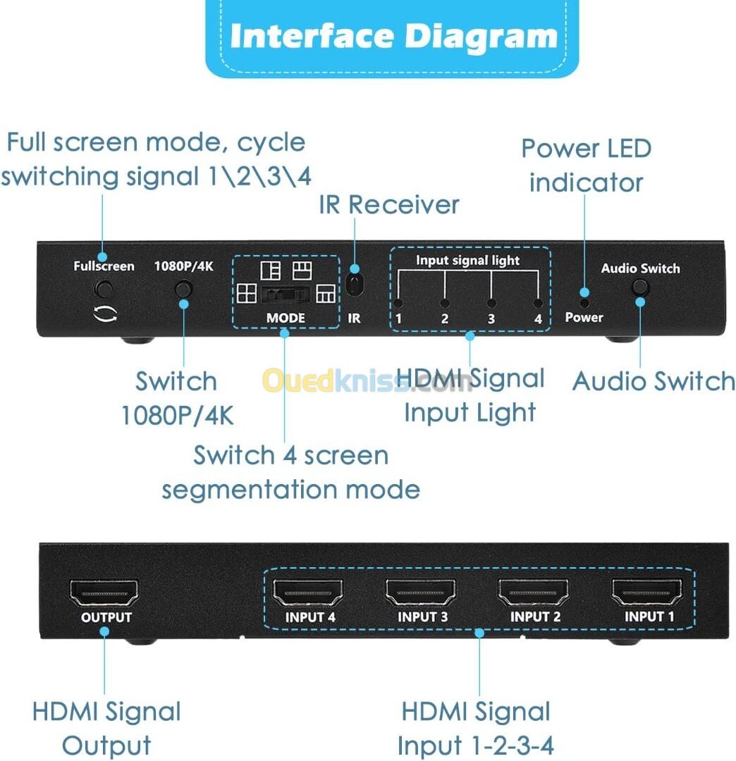 - Alternez entre 4 canaux HDMI sans fissuration d’écran ni latence.