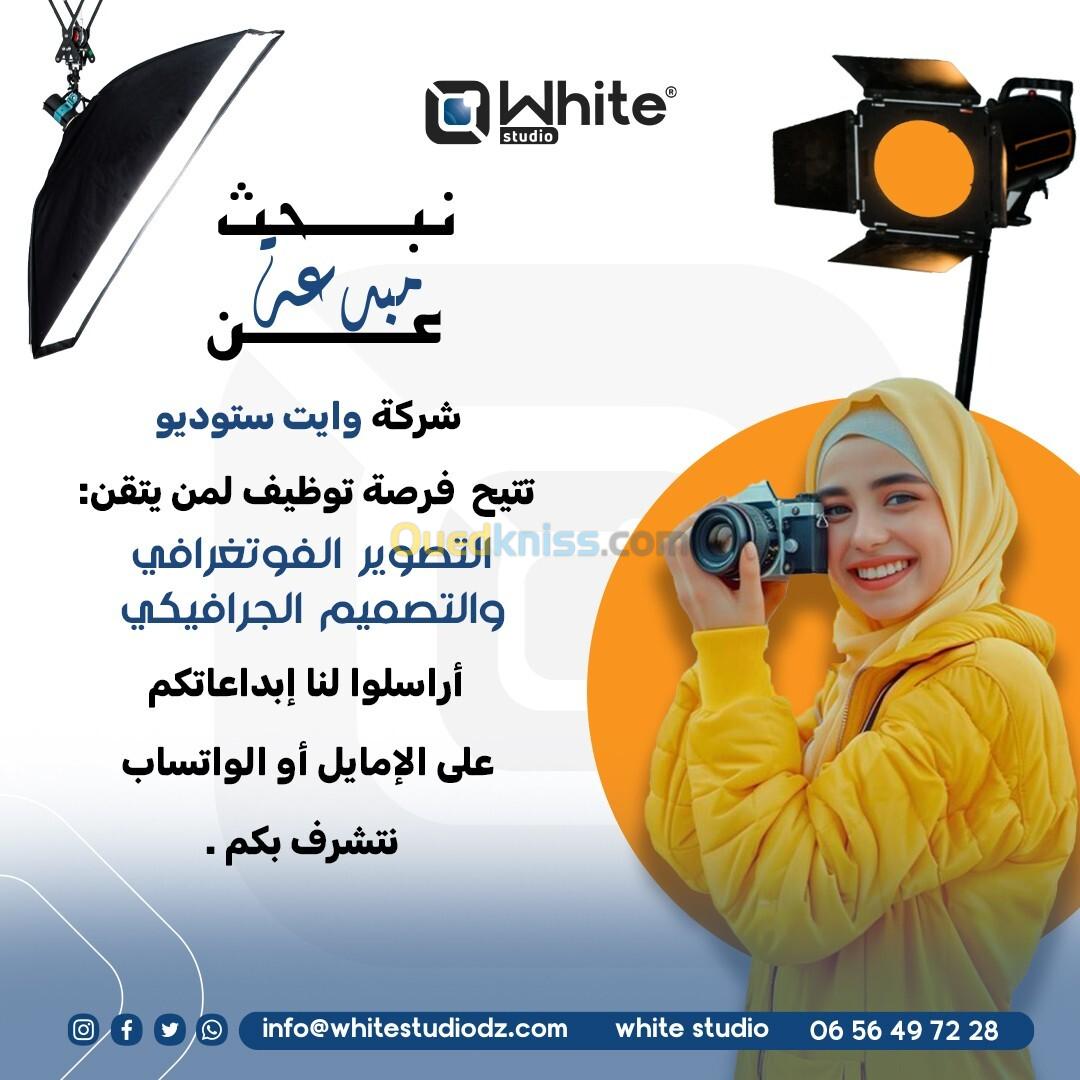 White Studio est une société professionnelle de communication et de studio photo #Pour embaucher une réceptionniste à temps plein (Femme) Profil : - Avec un esprit vif et créatif. - Maîtrise des programmes Adobe et Microsoft. - Enthousiaste, rigoureux, polyvalent et organisé. - Il est préférable de résider à Alger ou à proximité. - Disponible après un mois et demi