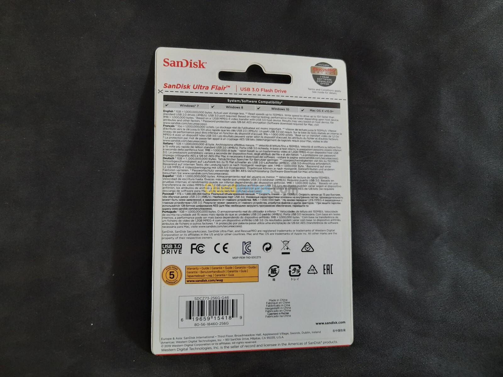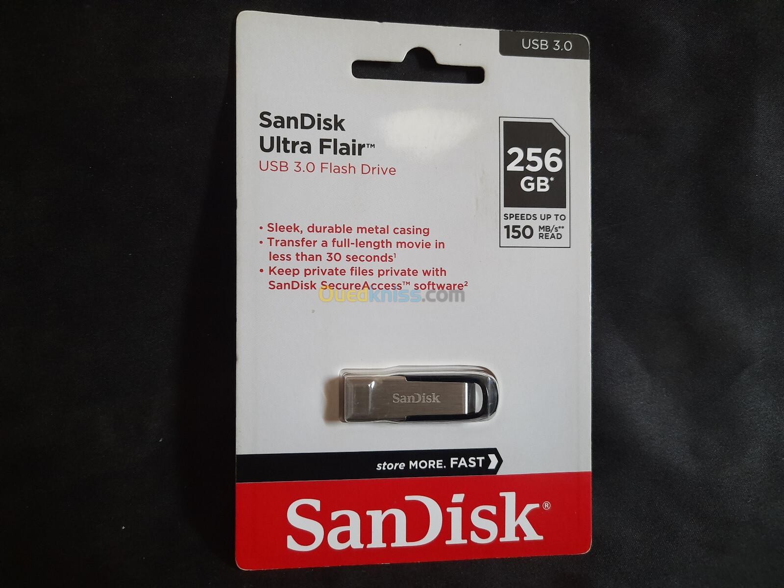 SANDISK Flash Disque 256 Go USB 3.0 Ultra Flair 150 Mb/s Original (Caba)