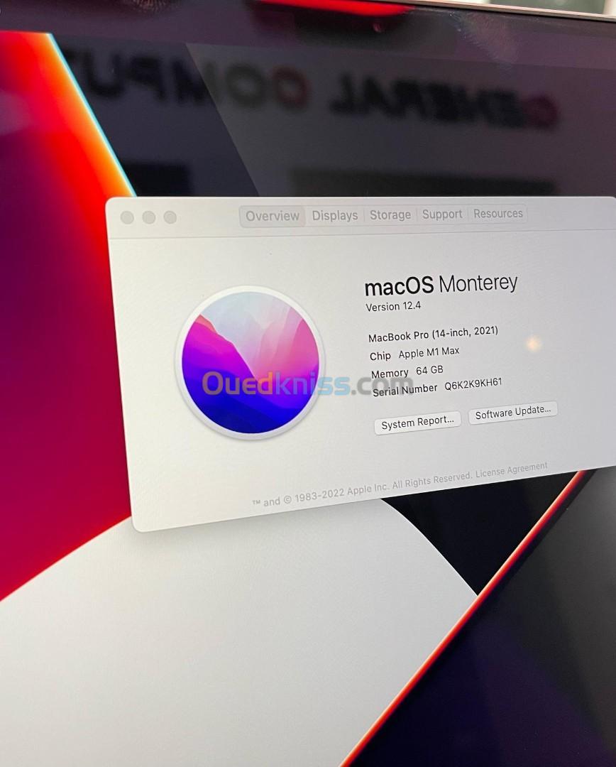 MACBOOK PRO 14" 2021 A2442 EMC3650 M1 Max 10-Core CPU/32-Core GPU RAM 64GB DISQUE 1TB SSD