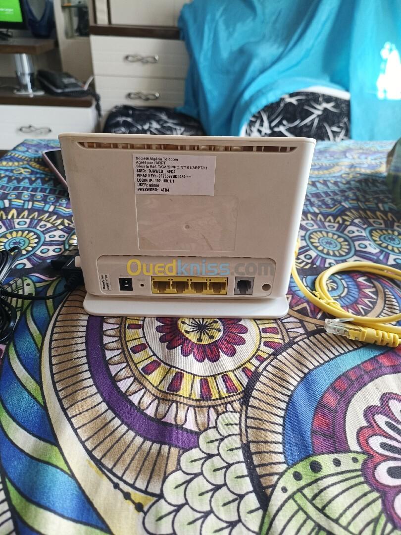 Je vends un modème Djaweb ADSL/Fibre en bon état de fonctionnement+ chargeur d'alimentation+ câble ethernet RG45 + câble téléphonique