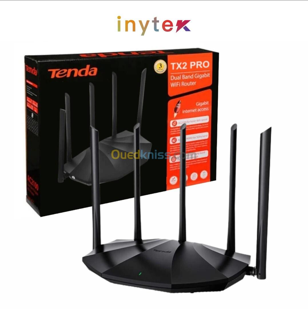 Routeur Wi-Fi 6 Tenda TX2Pro – 1501 Mbps 📶 Wi-Fi 6 nouvelle génération Le TX2Pro adopte MU-MIMO + OFDMA pour éliminer la latence et offrir un réseau plus rapide, stable et fluide. 🔸 Jusqu’à 1501 Mbps (2.4 GHz : 300 Mbps | 5 GHz : 1201 Mbps) 📡 Couverture étendue Grâce à 5 antennes externes 6 dBi et un module amplificateur intégré, il élimine les zones mortes et couvre toute la maison. 📱 Contrôle via application Tenda Contrôlez votre réseau à distance, activez le contrôle parental, limitez les horaires et usages pour une navigation plus saine. 🔄 Commutation intelligente de bande Le routeur ajuste automatiquement la fréquence pour vous garantir la meilleure vitesse et stabilité, selon votre emplacement. 📦 Paiement à la livraison – Disponible maintenant !