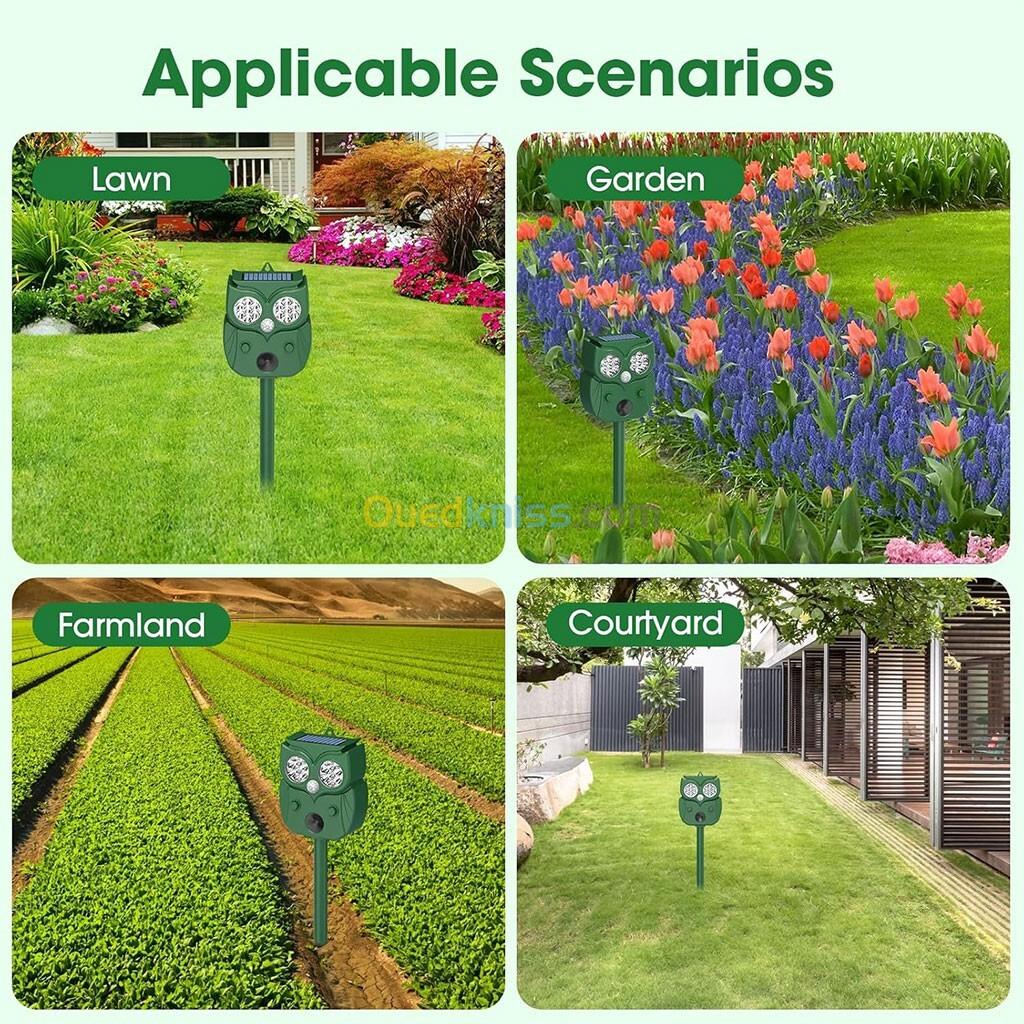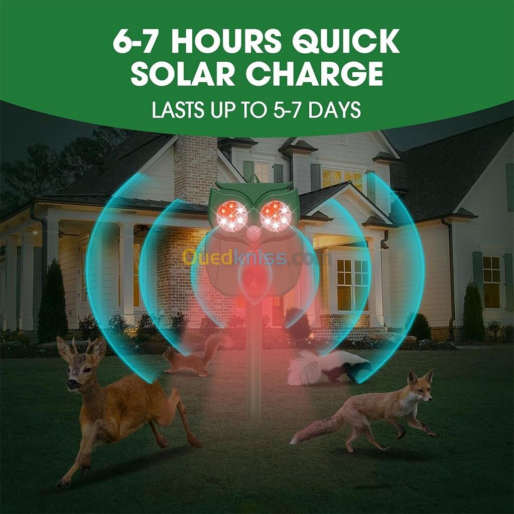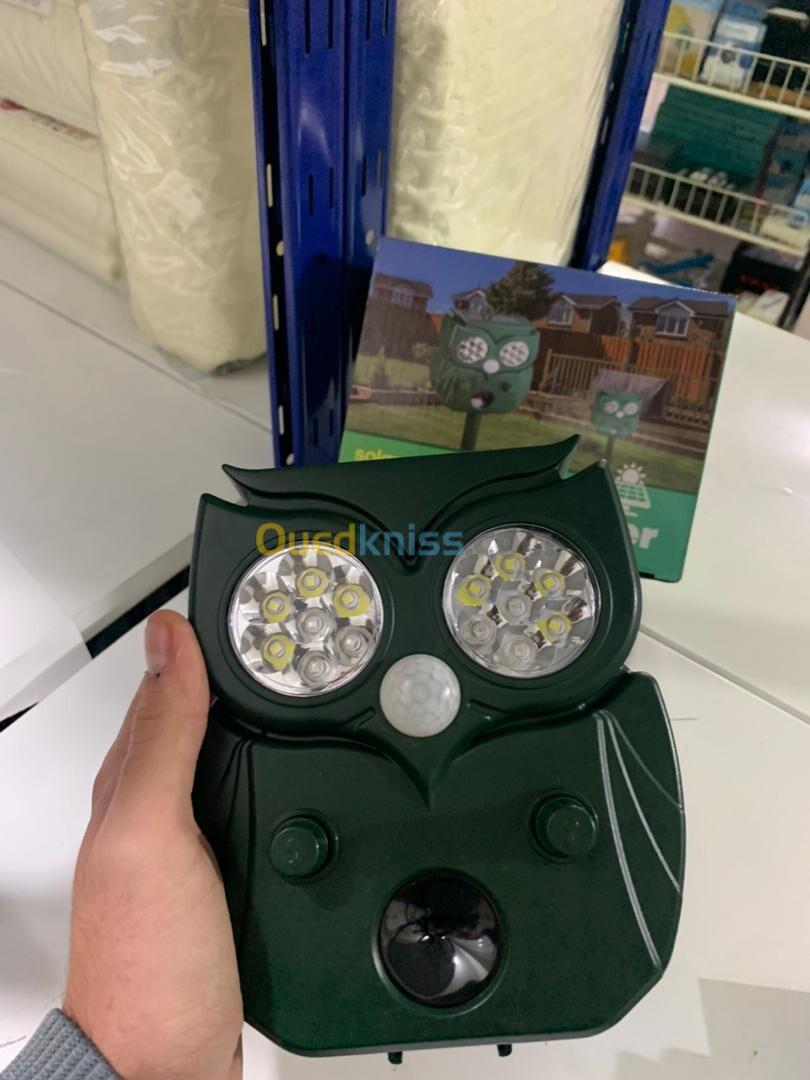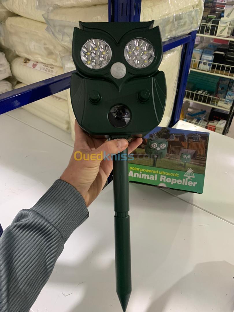 رادار طارد للحيوانات بالأشعة فوق الصوتية مع تصميم على شكل بومة - يعمل بالطاقة الشمسية 🌞🦉