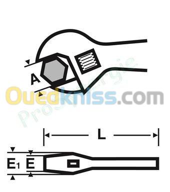 Mâchoire à grande ouverture qui lui permet de remplacer deux clés (6“-8“ pour la référence 017020, 8“-10“ pour la référence 017021, etc...)