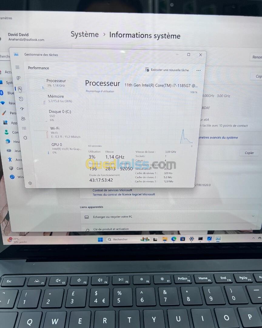 ● PROCESSEUR Intel(R) Core(TM) I7-1185G7 @ 3.00GHz