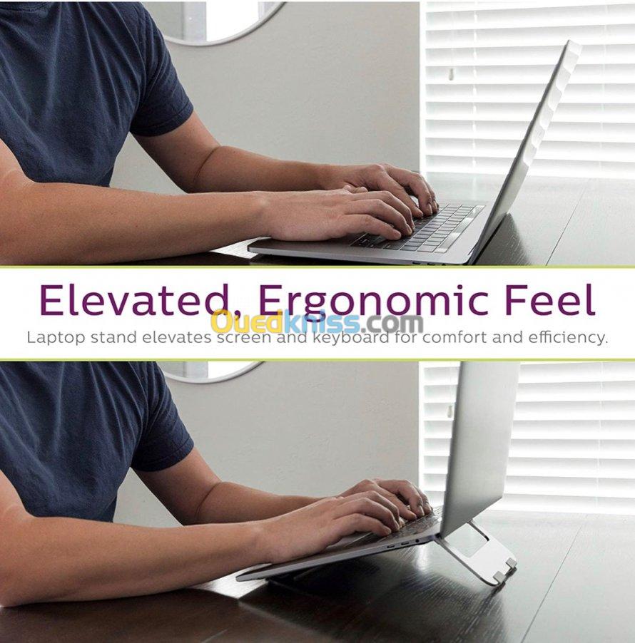 Support pour ordinateur portable ultra-mince conception en aluminium ventilé, antidérapant, style peu encombrant, travail à domicile, bureau, voyage, support pour ordinateur portable, ergonomique