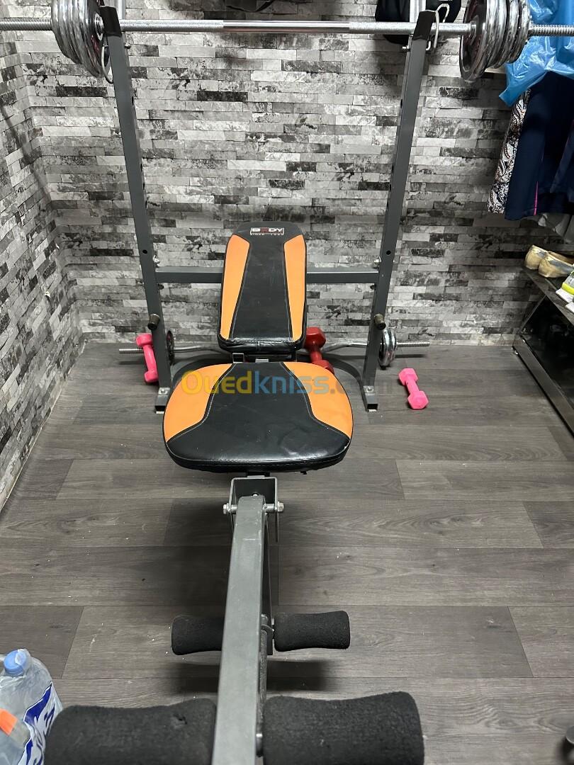 J’ai un bon de musculation multiples fonctions avec des poids 28 kg une barre longue une autre barre pour biceps et triceps deux haltères de 6 kg et 2 kg