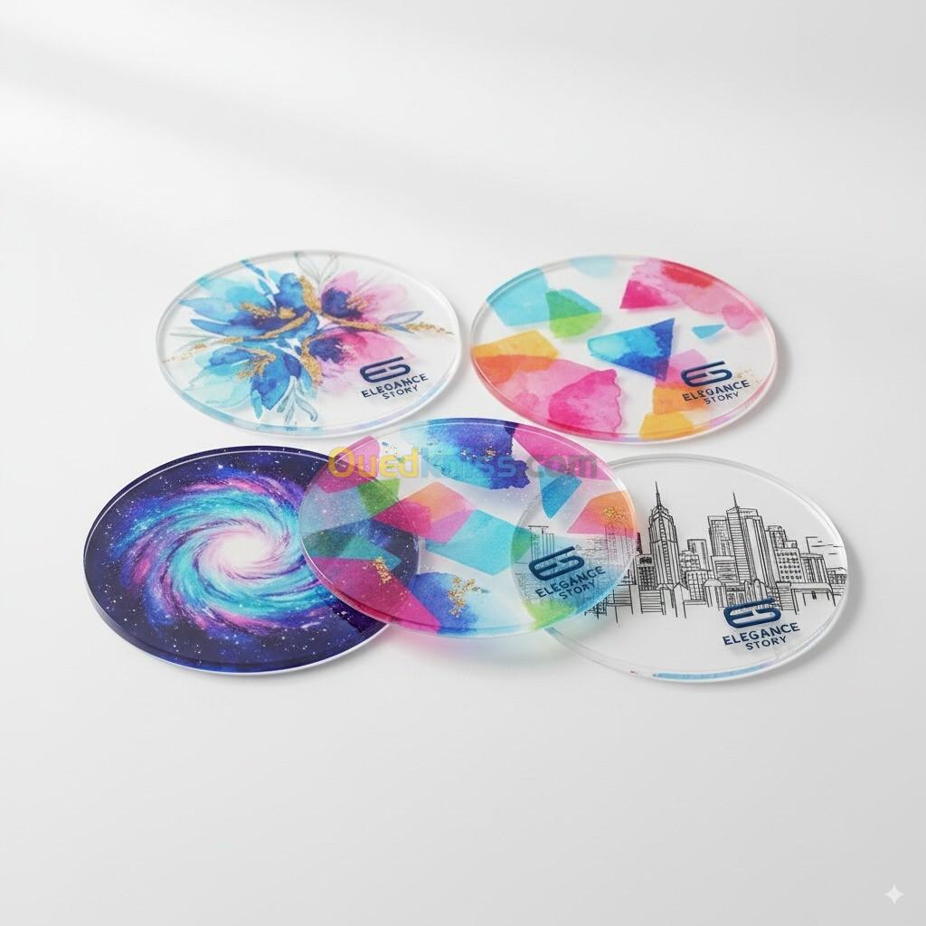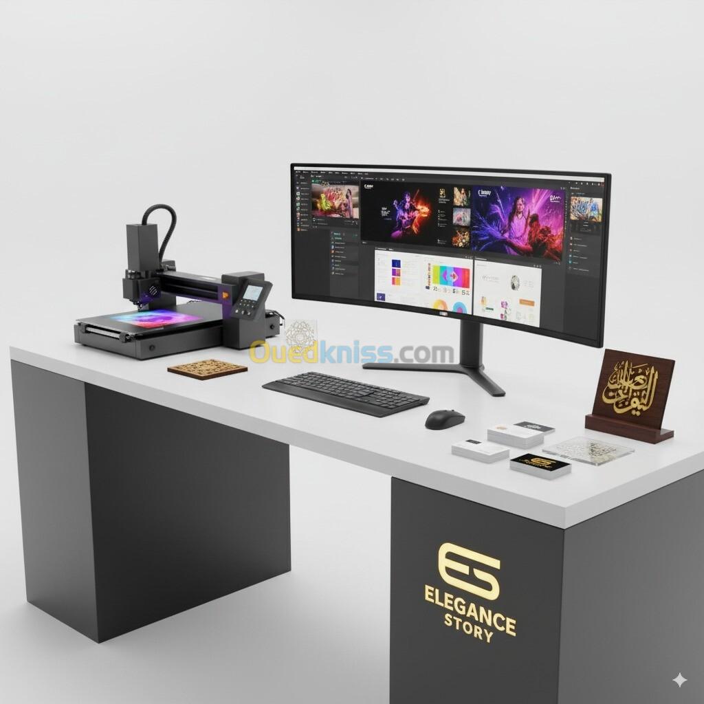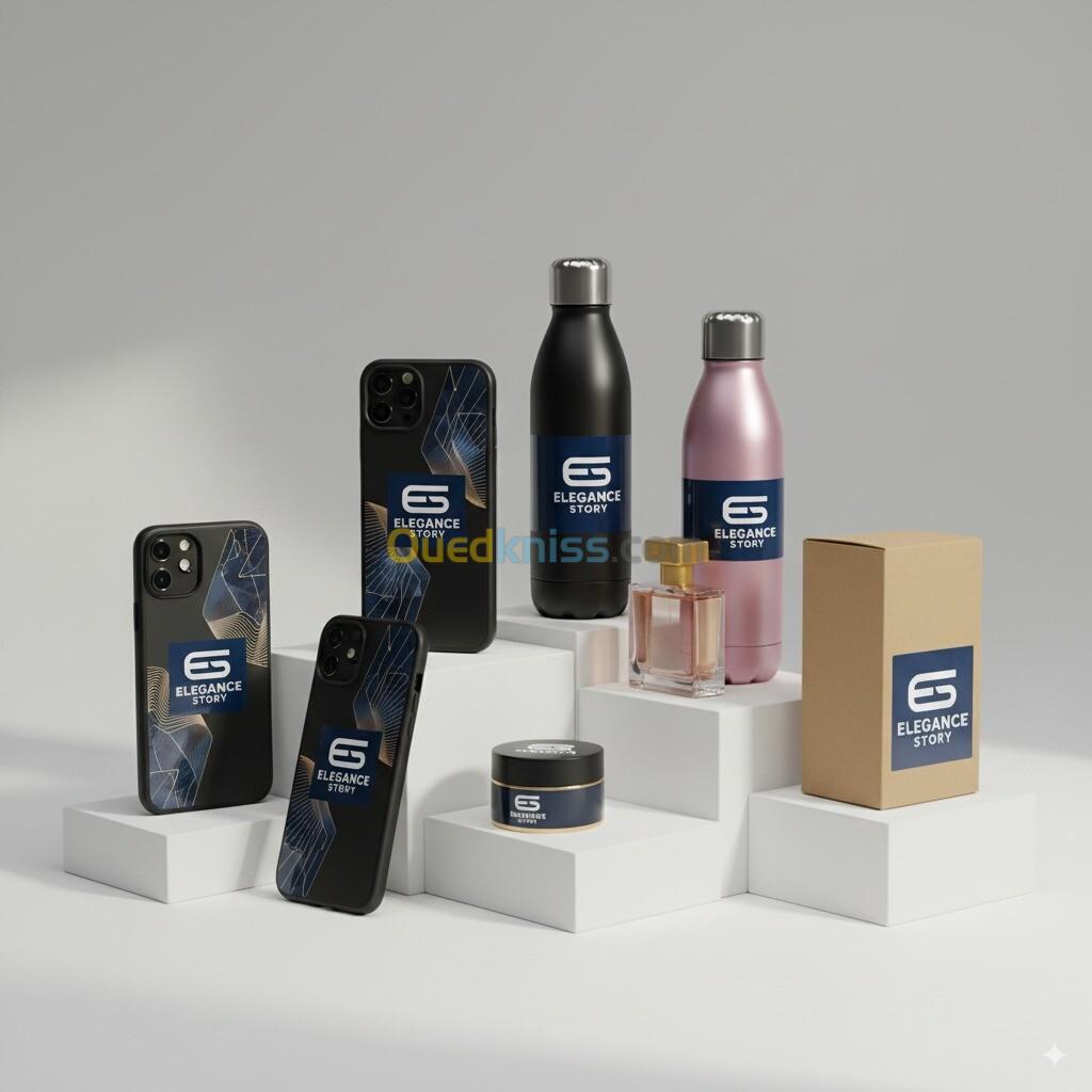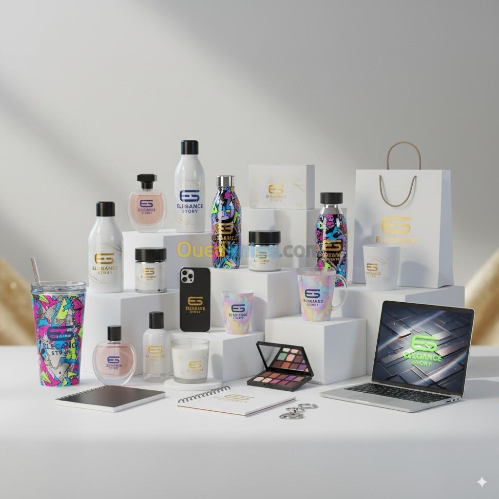 المنتجات المخصصة مثل أغطية الهواتف، المفاتيح، الهدايا الدعائية، واللافتات.