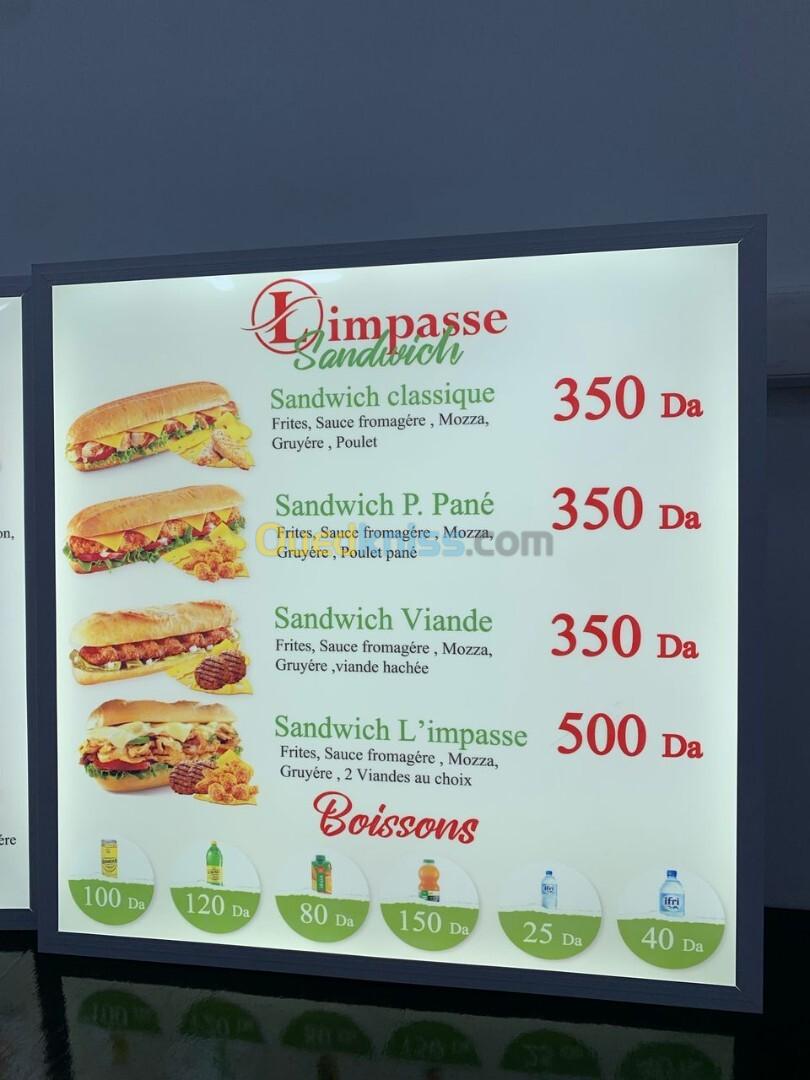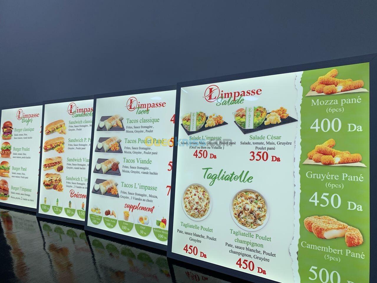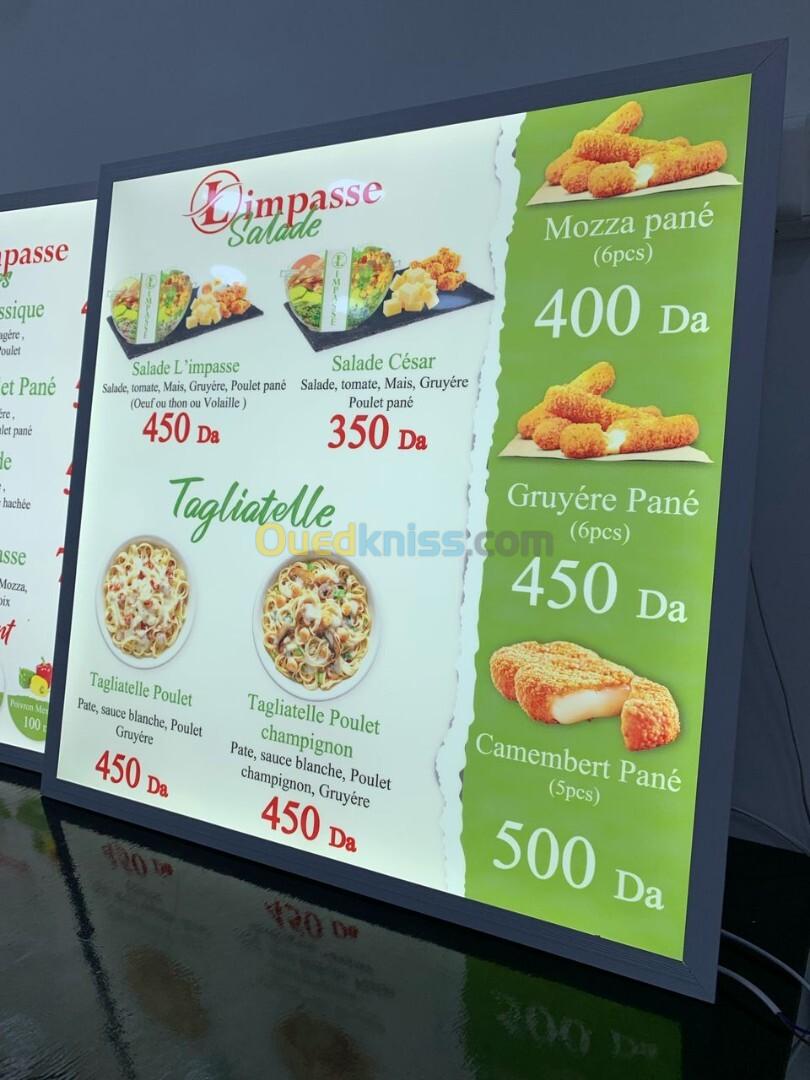 Menu Lumineux menu restaurant . publicité . enseigne lumineuse . pizza fast-food . café