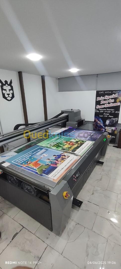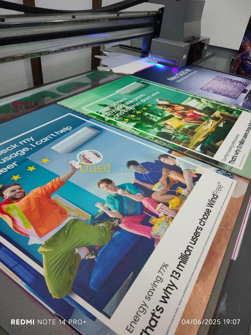 Chez eurl miral print by oran web agency , nous sommes fiers de vous annoncer l'arrivée de notre nouvelle machine d'impression à plat. Cette technologie de pointe nous permet de réaliser des impressions de haute qualité sur une multitude de supports rigides.