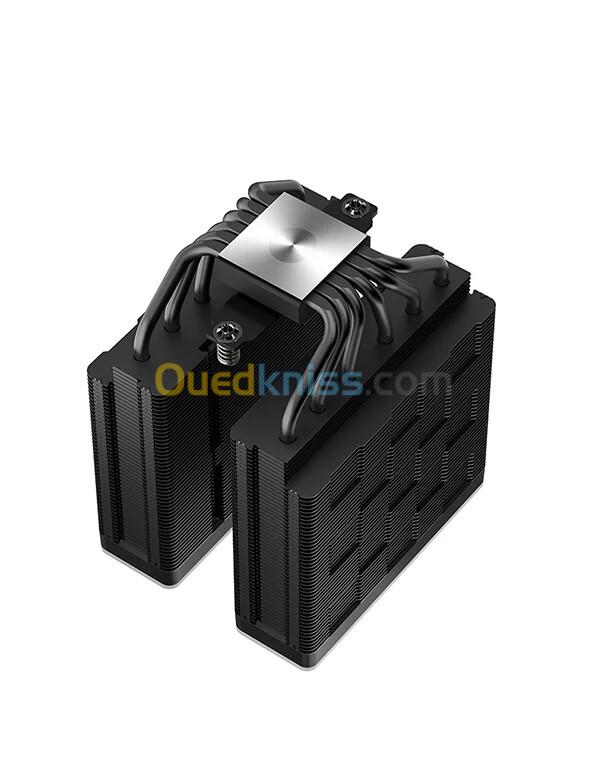 Le DeepCool AG620 BK ARGB V2 est un refroidisseur de processeur à double tour entièrement noir, hautes performances et axé sur l'efficacité, doté de six caloducs intégrés dans la tour de dissipateur thermique dense pour une dissipation thermique optimale et associé à deux ventilateurs ARGB PWM de 120 mm finement réglés pour un refroidissement puissant.