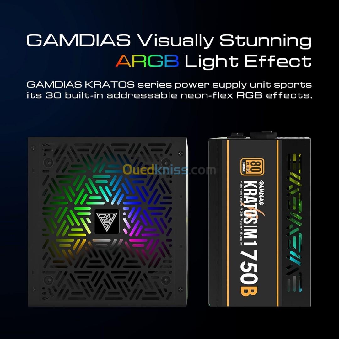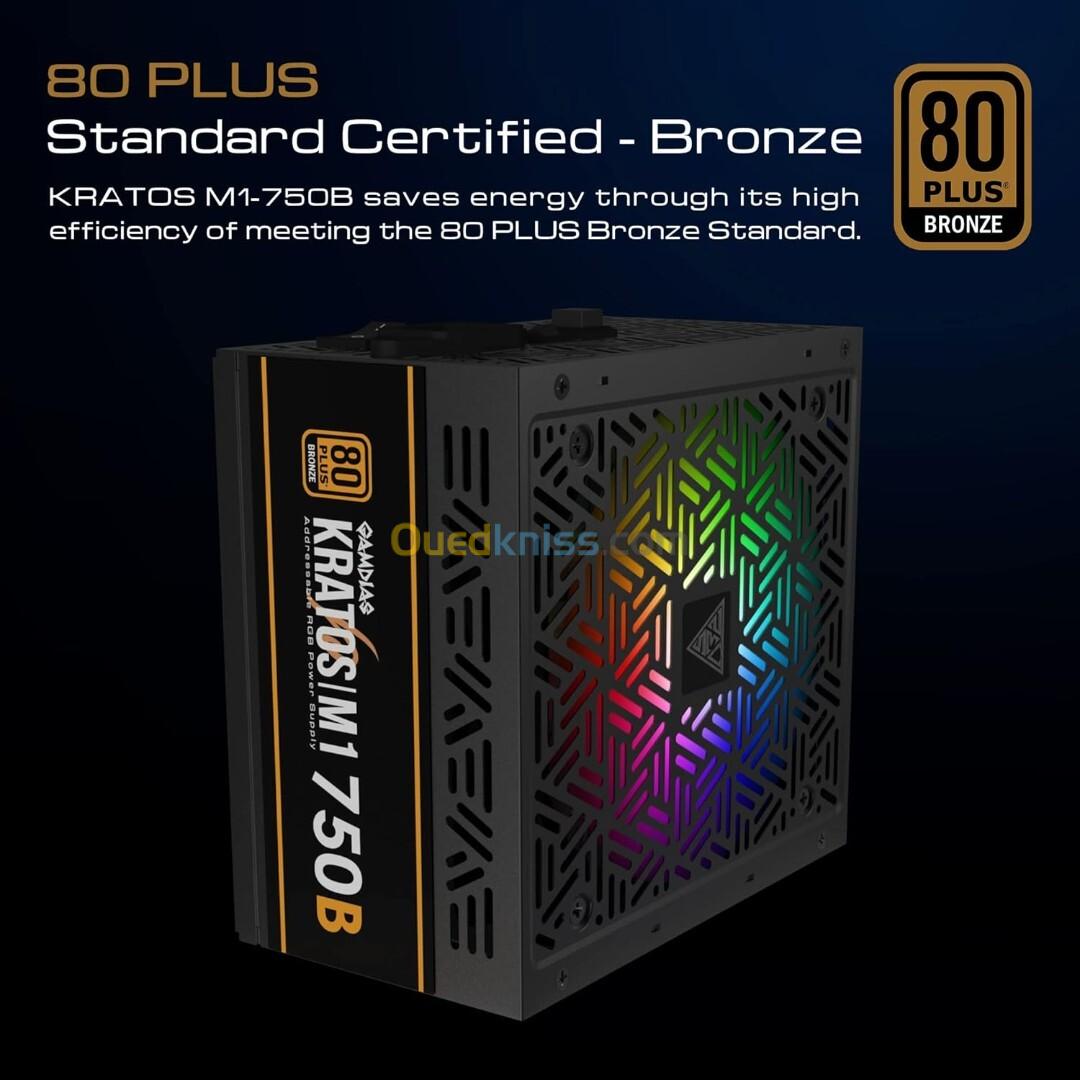 GAMDIAS KRATOS M1-750B - ALIMENTATION 750W - 80+ BRONZE - SILENCIEUSE- RGB - ATX PFC ACTIF -BLACK