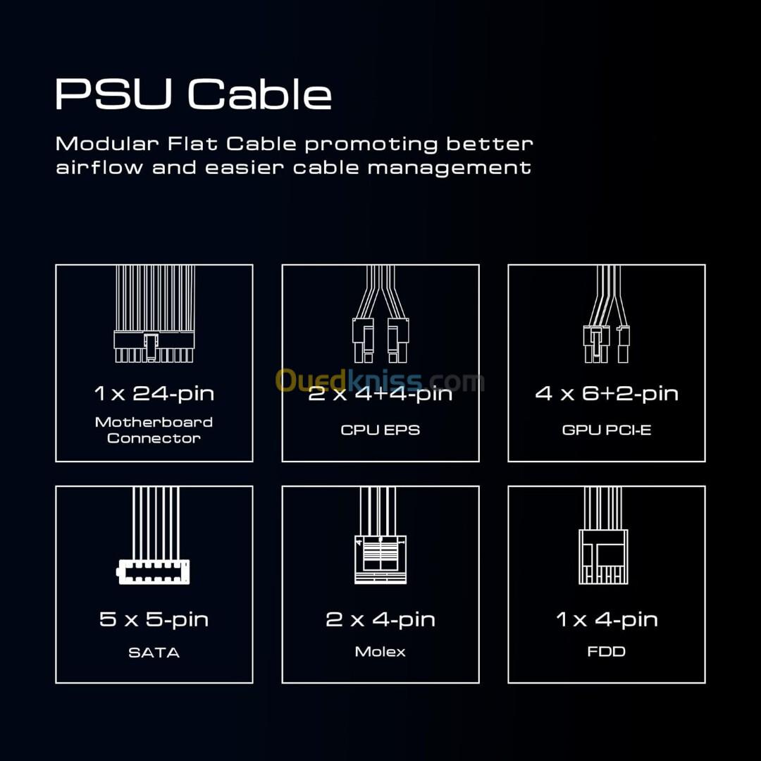 • Type de câblage : Non modulaire – câbles plats pour une meilleure gestion interne