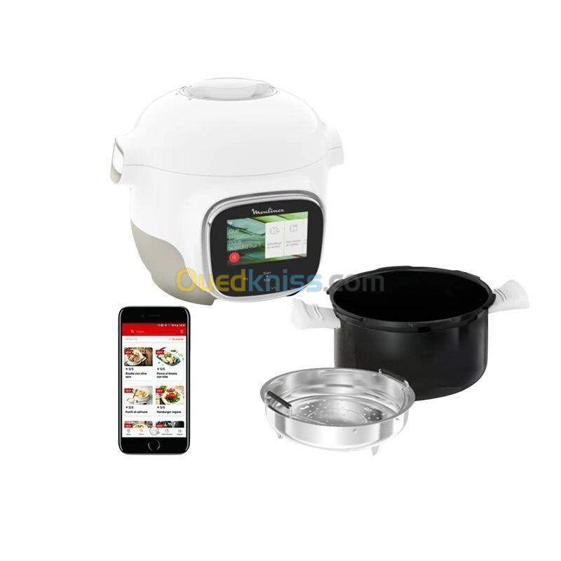 Marque Moulinex Capacité 3 Litres Couleur Blanc Dimensions du produit 31,4P x 32,4l x 26,8H centimètres Caractéristique spéciale Multicuiseur Puissance 900 Watts Poids de l'article 4800 Kilogrammes Méthode de contrôle Tactile Révolutionnez vos repas à toute vitesse avec le multicuiseur intelligent connecté haute pression Cookeo Touch WiFi Mini Recettes illimitées 3 Litres Blanc de Moulinex ! Cookeo vous fait gagner du temps, avec plus de 100 recettes en moins de 10 minutes et 13 modes de cuisson. Laissez Cookeo gérer la cuisson pour vous ! Le cookeo touch mini donne toutes les informations nécessaires selon le poids et le type d’ingrédients. Il programme lui-même les cuissons pour réussir vos plats à tous les coups. Capacité et puissance : Ce multicuisseur intelligent, doté d’une puissance de 900 watts, possède une capacité utile de 3 litres (Jusqu'à 4 personnes). 13 modes de cuisson : Très complet, il s'adapte automatiquement à vos recettes. - Cuisson sous pression : trois modes dont le monde express encore plus rapide. - Cuisson vapeur : douce, cuisson vapeur boost. Des cuissons d'ingrédients jusqu'à deux fois plus rapide. - Trois température de rissolage et de mijotage (doux, moyen, fort). Maintien au chaud automatique et réchauffage. Écran tactile : Découvrez une nouvelle façon révolutionnaire de cuisiner avec Cookeo Touch le multicuiseur haute pression connecté. Avec son grand écran tactile inclinable, il n'a jamais été aussi facile de trouver l'inspiration, des recettes, des techniques culinaires, des conseils... Le tout illustré pas à pas en images pour réussir tous vos plats. Vous pouvez aussi trouver la recette parfaite en fonction de ce que vous avez dans votre réfrigérateur ou grâce à des filtres pratiques. Recettes : Vous cherchez des recettes pour 2, 4 personnes ? une entrée, un plat, un dessert ? en 5, 10 ou 15 min ? à base de poulet, de légumes etc... La recherche est simple et rapide et Cookeo Touch Wifi aura toujours la recette qui vous convient. Fini le gaspillage et le manque d'inspiration, Cookéo Touch wifi vous propose des recettes en fonction des ingrédients présents dans votre frigo. Rensignez les aliments et les quantités et Cookéo Touch s'occupe du reste. Rapidité : Gagnez du temps en cuisine, Cookeo Touch s'occupe de tout ! Jamais un Cookeo n’a été aussi rapide et complet. Trouvez facilement plus de 100 recettes à cuisiner en moins de 10 minutes. Le mode de cuisson express prépare des plats comme la blanquette de saumon en seulement 3 minutes et le poulet basquaise en seulement 13 minutes ! Entretien : Bénéficiez d'une facilité d'utilisation grâce au système d'ouverture et de fermeture du couvercle en un seul geste. Sa cuve en céramique ultra-résistante est amovible pour un nettoyage plus facile. La cuve de cuisson, anti-adhésive, le couvercle ainsi que le panier vapeur sont compatibles lave-vaisselle. Pour plus de sûreté, cet appareil est doté d'un système de sécurité en cas de surpression. Et pour encore plus de praticité, le cordon est amovible. Accessoire : Le Cookeo Touch WiFi Mini est livré avec un panier vapeur. Connecté : Avec sa connexion wifi il se met à jour automatiquement et télécharge toutes les nouvelles recettes Moulinex et de la communauté ! Vous accédez à une infinité de recettes directement depuis votre cookeo Touch. Créez vos carnets de recettes personnalisés et retrouvez facilement les recettes préférées de vos enfants ou du soir… Application Moulinex exclusive : Recherchez rapidement et facilement des recettes selon des critères tels que le nombre d’invités, le type de plat, le temps de préparation ou les ingrédients dans votre réfrigérateur ! De plus, profitez de recettes adaptées à vos besoins et partagez vos propres recettes avec la communauté Cookeo