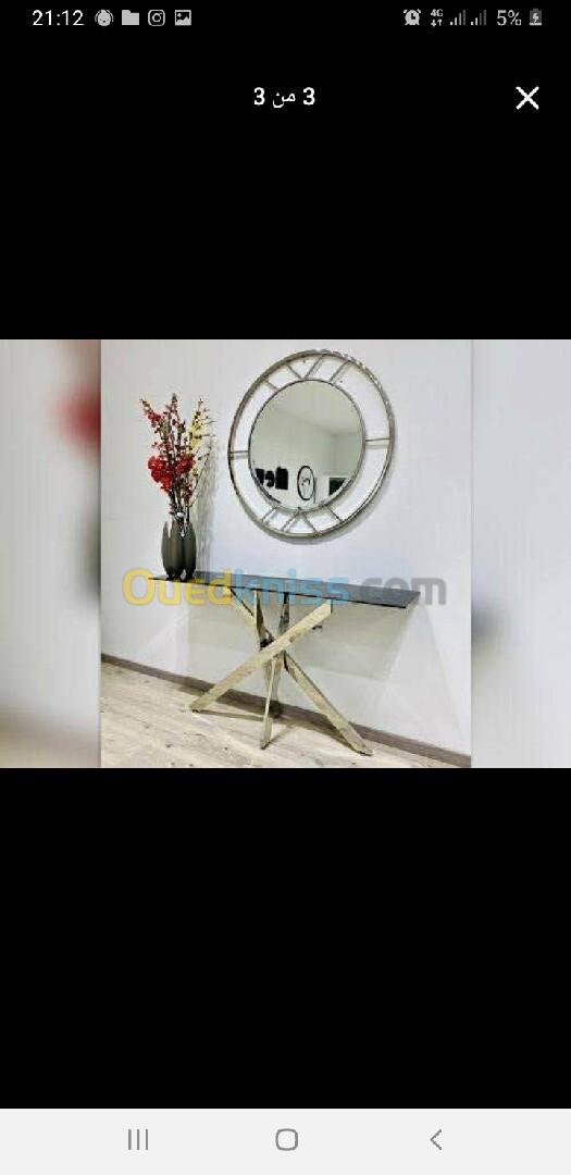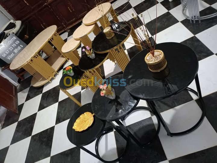 Table basse inox + table console + Étagère