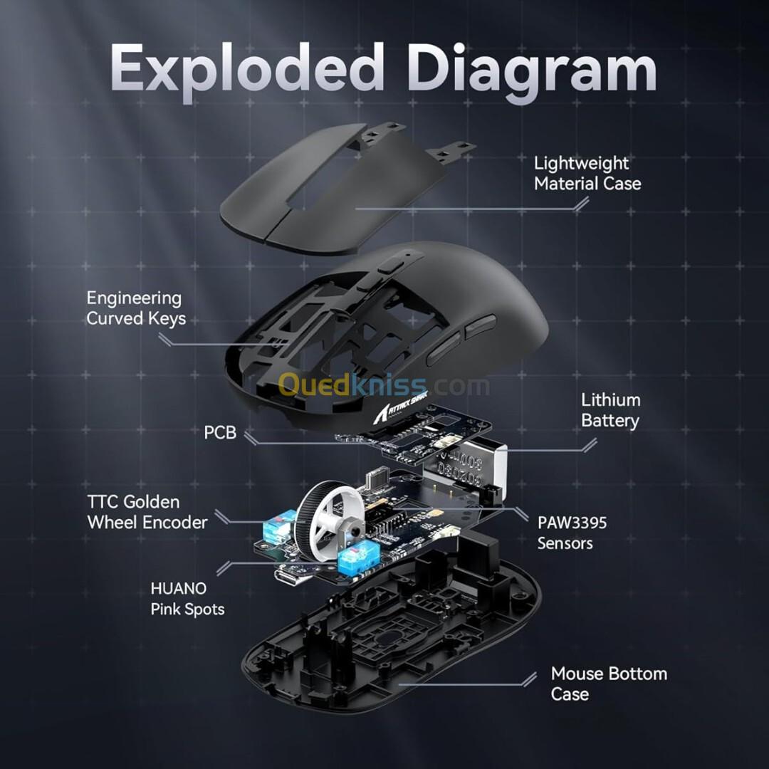 ✅ Désignation : ATTACK SHARK X6 - PAW3395 - SOURIS FILAIRE & SANS FIL - BLUETOOTH 5.2- USB 2.4G - 7 BOUTONS - 26000 DPI - BLACK