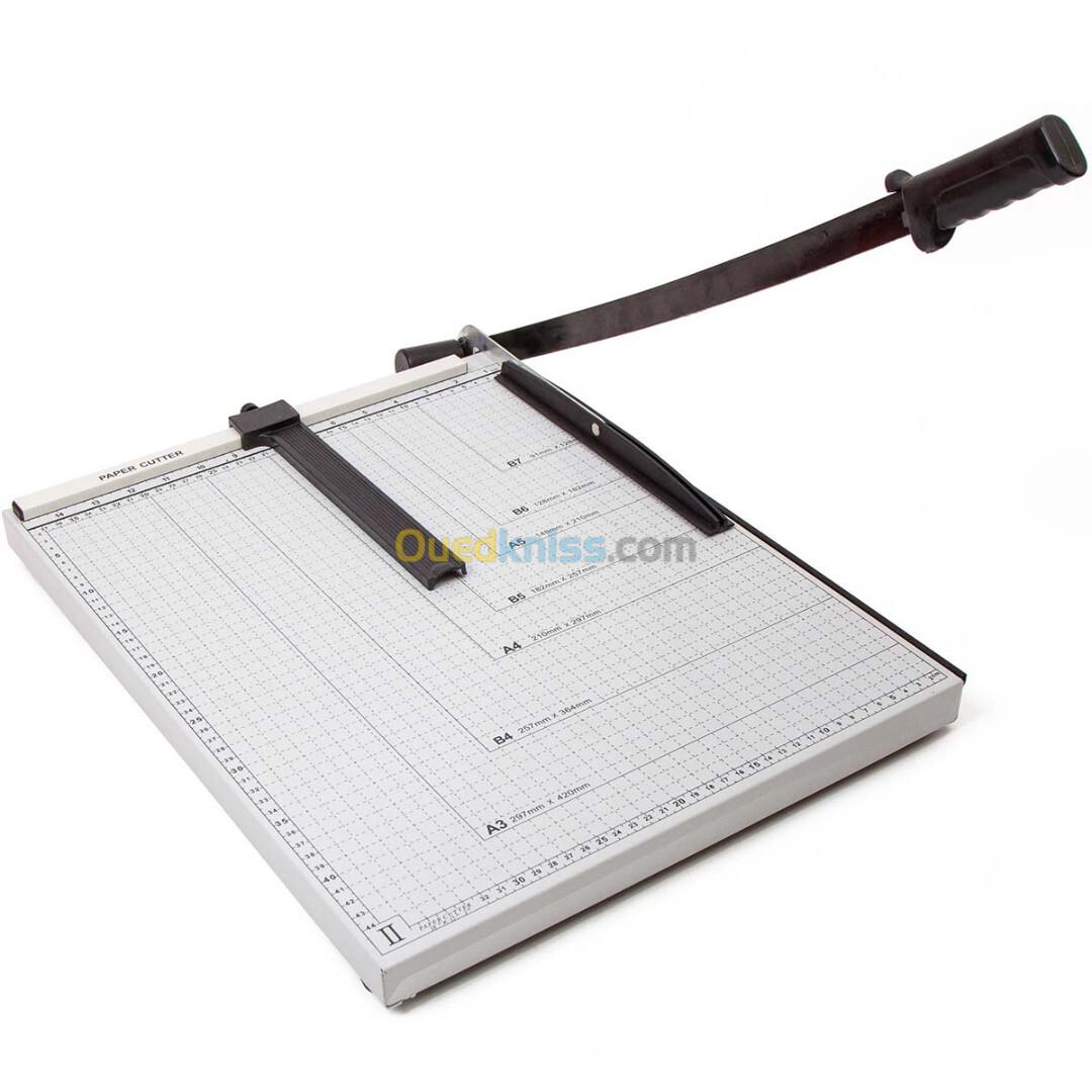 • C'est un guillotine professionnelle de coupeur de papier A3. Parfaitement fini pour couper vos documents, photos et autres matériaux aux tailles requises A3, B4, A4, B5, A5, B6, B7, facilement et rapidement