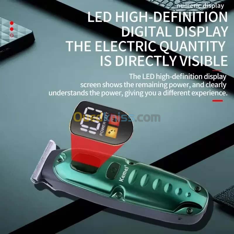 Kemei KM-2259 est une tondeuse professionnelle rechargeable conçue pour offrir une coupe précise, rapide et confortable. Son affichage LCD intégré permet de surveiller en temps réel le niveau de batterie pour une utilisation sans interruption. Grâce à sa batterie haute capacité, elle offre une autonomie d’environ 150 minutes, idéale pour plusieurs sessions de coupe. Polyvalente, elle s’adapte aussi bien à la barbe qu’aux cheveux, avec des lames en acier inoxydable garantissant une durabilité et une netteté KM-2259 est une tondeuse professionnelle rechargeable conçue pour offrir une coupe précise, rapide et confortable. Son affichage LCD intégré permet de surveiller en temps réel le niveau de batterie pour une utilisation sans interruption. Grâce à sa batterie haute capacité, elle offre une autonomie d’environ 150 minutes, idéale pour plusieurs sessions de coupe. Polyvalente, elle s’adapte aussi bien à la barbe qu’aux cheveux, avec des lames en acier inoxydable garantissant une durabilité et une netteté exceptionnelles.
