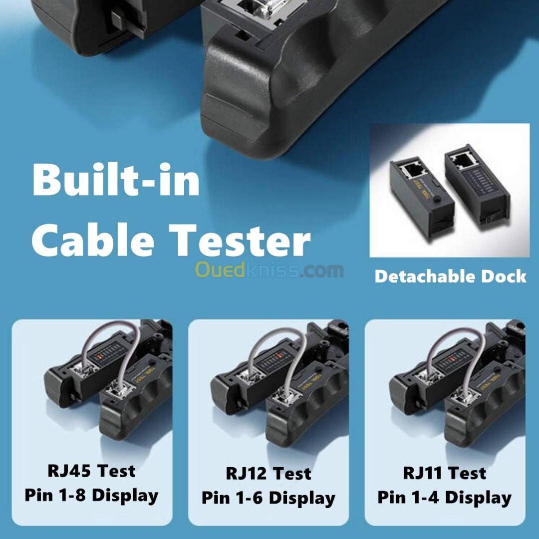 Cet outil combine les fonctions essentielles pour travailler avec les câbles réseau : sertissage, dénudage, découpe et test. Il est pensé pour les techniciens et bricoleurs réseau qui veulent un seul outil performant pour fabriquer et diagnostiquer des câbles RJ45 / RJ11 / outil combine les fonctions essentielles pour travailler avec les câbles réseau : sertissage, dénudage, découpe et test. Il est pensé pour les techniciens et bricoleurs réseau qui veulent un seul outil performant pour fabriquer et diagnostiquer des câbles RJ45 / RJ11 / RJ12.
