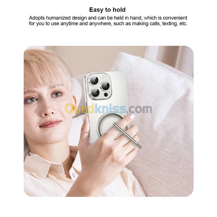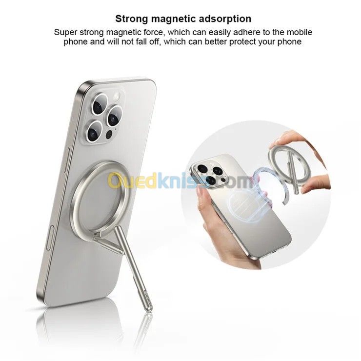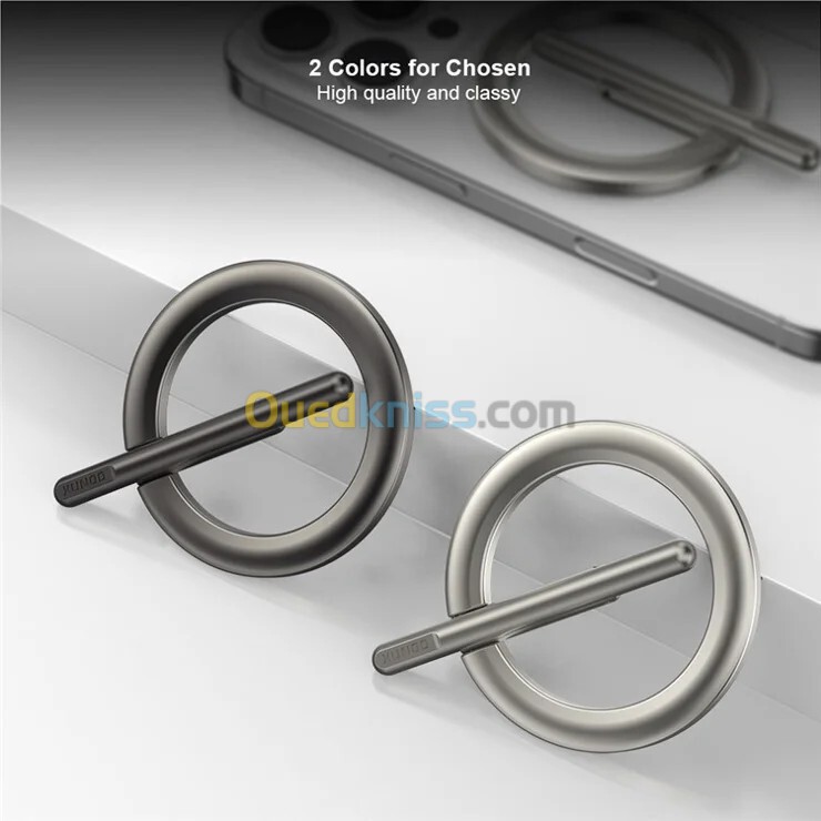 XUNDD XDHO-055 Support de téléphone magnétique anneau Support rotatif en alliage d'aluminium - Argent 【Porte-anneau magnétique】 Support de téléphone portable magnétique pratique pour une utilisation et un soutien pratiques 【Positionnement polyvalent】 Prend en charge les orientations verticales et horizontales pour des angles de visualisation de l'écran flexibles 【Conception ergonomique】 Une conception humanisée permet une utilisation confortable à la main pendant les appels, les messages texte et autres activités 【Rotation à 360°】 Un réglage multi-angle permet un basculement fluide entre les modes portrait et paysage 【Forte adhérence magnétique】 Une force magnétique super puissante se fixe fermement aux téléphones portables, empêchant les chutes accidentelles 【Compact et élégant】 Un design petit et fin conserve une apparence texturée tout en restant facile à transporter
