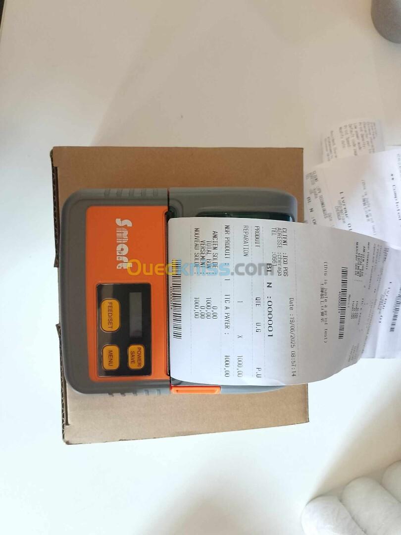 2- Imprimante mobile : Imprimante mobile thermique 80mm et 57mm. Compacte, légère et facile à transporter, cette imprimante mobile permet une impression rapide et efficace directement depuis votre téléphone ou tablette, où que vous soyez. disponible en plusieurs marque ( SMART / HPRT / Xprinter ).